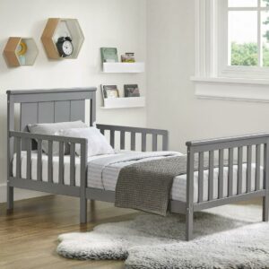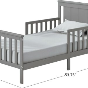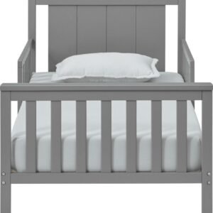 Oxford Baby Lazio Wood Frame Toddler Bed with Guardrails and Straight-Line Headboard, Dove Gray