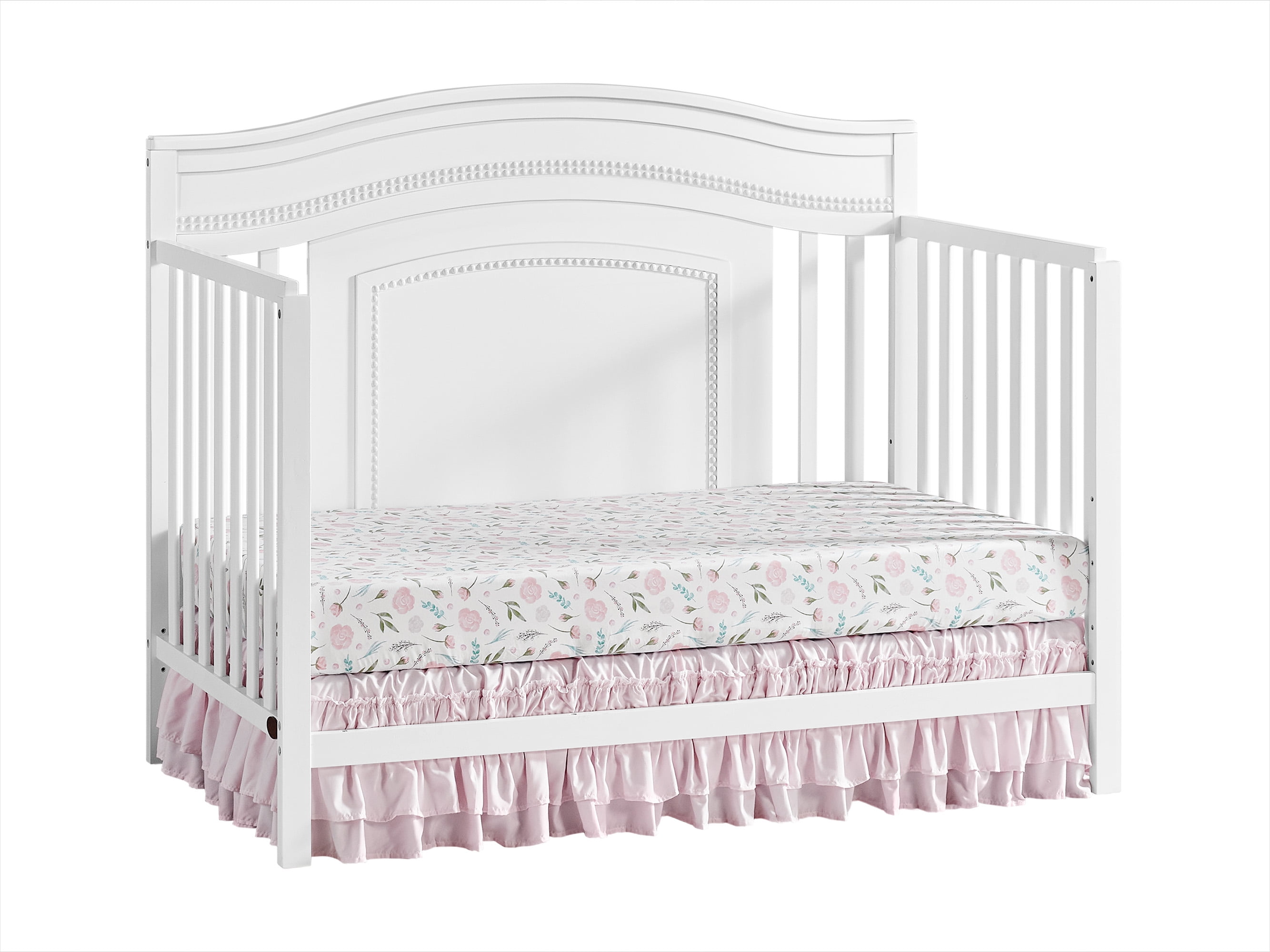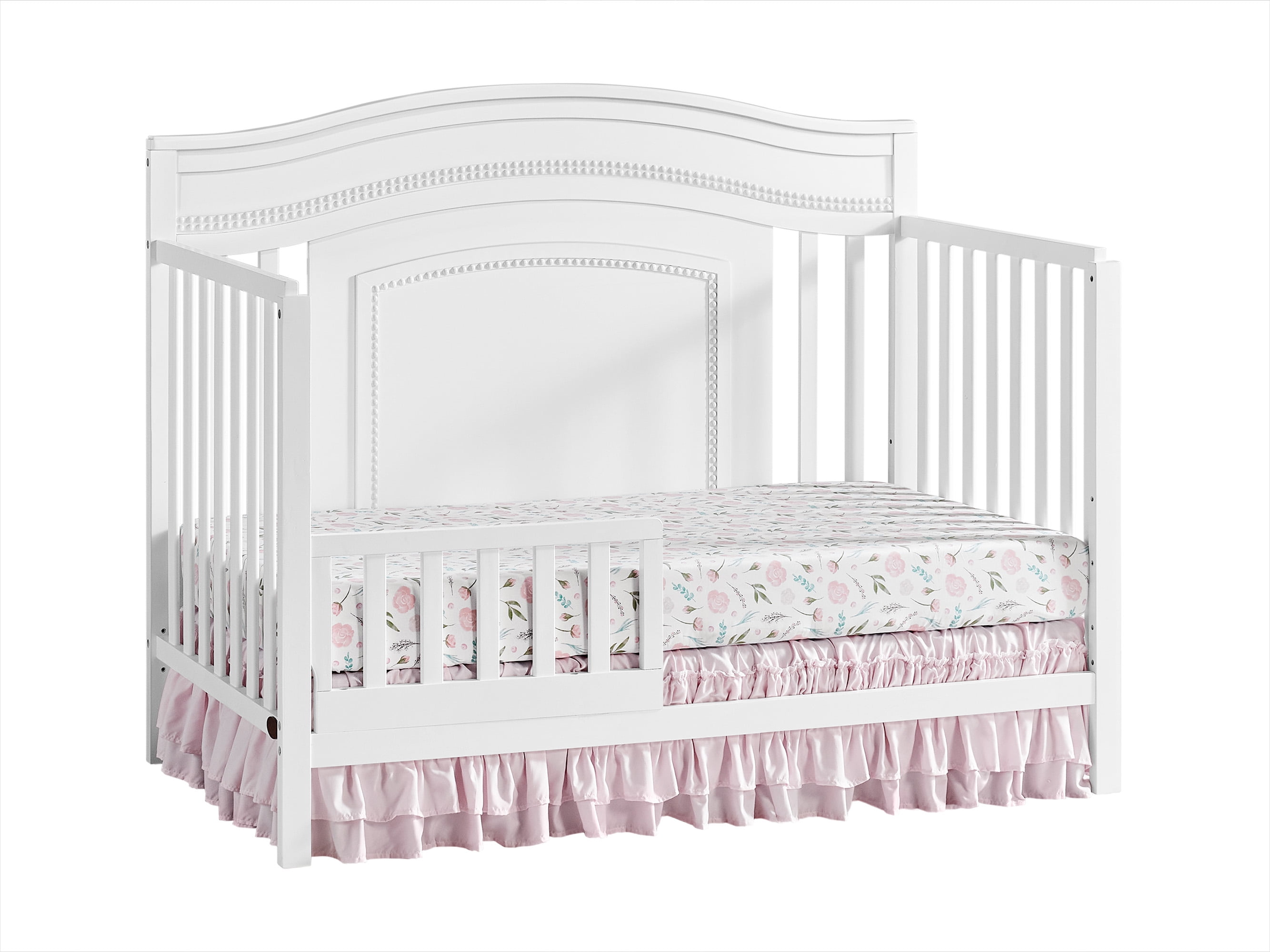 SAFETY FIRST: Oxford Baby Nursery Furniture is made to the highest safety standards that meet those set by the Consumer Product Safety Commission (CPSC) and American Society for Testing and Materials (ASTM); Our furniture endures rigorous testing by third-party labs to guarantee compliance with U.S. and Canada market so you can rest assure that your child is sleeping in a safe sleep environment EXQUISITE STYLING: The Luella Crib boasts an elegant full panel gently curved headboard with enchanting beaded detail, and a smooth to the touch finish PREMIUM QUALITY & CRAFTSMANSHIP: Made from solid woods and wood veneers and backed by a 1 Year Limited Manufacturer’s Warranty, this crib is expertly crafted from solid and sustainably sourced wood providing quality construction creating a safer, sturdier sleep environment for your baby THOUGHTFULLY DESIGNED: Designed to fit a standard-sized crib mattress, this Oxford Baby 4-in-1 Crib offers a convenient convertible design that will grow as your child grows by converting from a crib to toddler bed, daybed, and full-size bed with 3-levels of mattress height adjustments for your growing child GREENGUARD GOLD CERTIFIED: The Oxford Baby Luella 4-in-1 Convertible Crib has achieved GREENGUARD GOLD Certification; GREENGUARD GOLD Certified products have undergone rigorous testing for over 10,000 chemical emissions, ensuring that this product is certified for low chemical emissions into indoor air during product usage COMPLETE NURSERY COLLECTION: The Luella Collection by Oxford Baby in White features a 4-in-1 Convertible Crib, 3-Drawer Dresser, Changing Topper, Toddler Bed Guard Rail , Full-Size Bed Conversion Kit , and Oxford Baby Crib Mattress, sold separately ASSEMBLED DIMENSIONS: Measuring 54.75 in. W x 30.38 in. D x 43.75 in. H (50.60 lbs.), this full-size Oxford Baby Crib arrives ready to assemble and includes hardware for assembly; screwdriver not included but required to assemble WEIGHT CAPACITY: 50 pound weight capacity when used as a crib, toddler bed, or day bed; 400 pound weight capacity when converted to a full-size bed GROWS WITH YOUR BABY: To guarantee your child’s crib can be converted as they grow, we highly recommend purchasing the compatible crib conversion accessories such as toddler guard rail and full bed conversion kit within a year of your initial crib purchase. This helps avoid any potential issues with stock availability or product discontinuation. Secure your conversion accessories early to ensure your little one enjoys a smooth transition from crib to toddler bed and beyond.