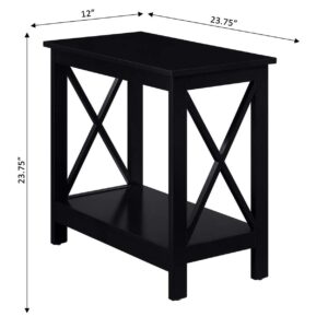 Oxford Chairside End Table with Shelf, Black The Oxford Chairside End Table with Shelf by Convenience Concepts is a simple timeless piece that is sure to complement any furniture collection. Available in multiple finishes, this table features a slim yet spacious chairside design. Two tiers of open shelving give plenty of space for your entertainment or storage needs. Built to last, this fixture is crafted from MDF and is easy to assemble. Add an end table to each side of your sofa to complete your stylish family or living room space. Shop coordinating pieces from the Oxford Collection by Convenience Concepts, each sold separately.
