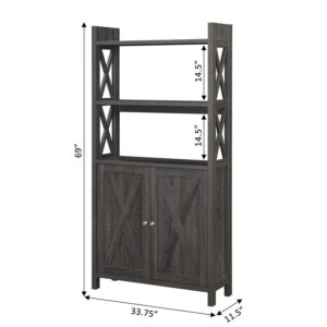 Oxford Kitchen Dining Storage Cabinet with Shelves, Weathered Gray