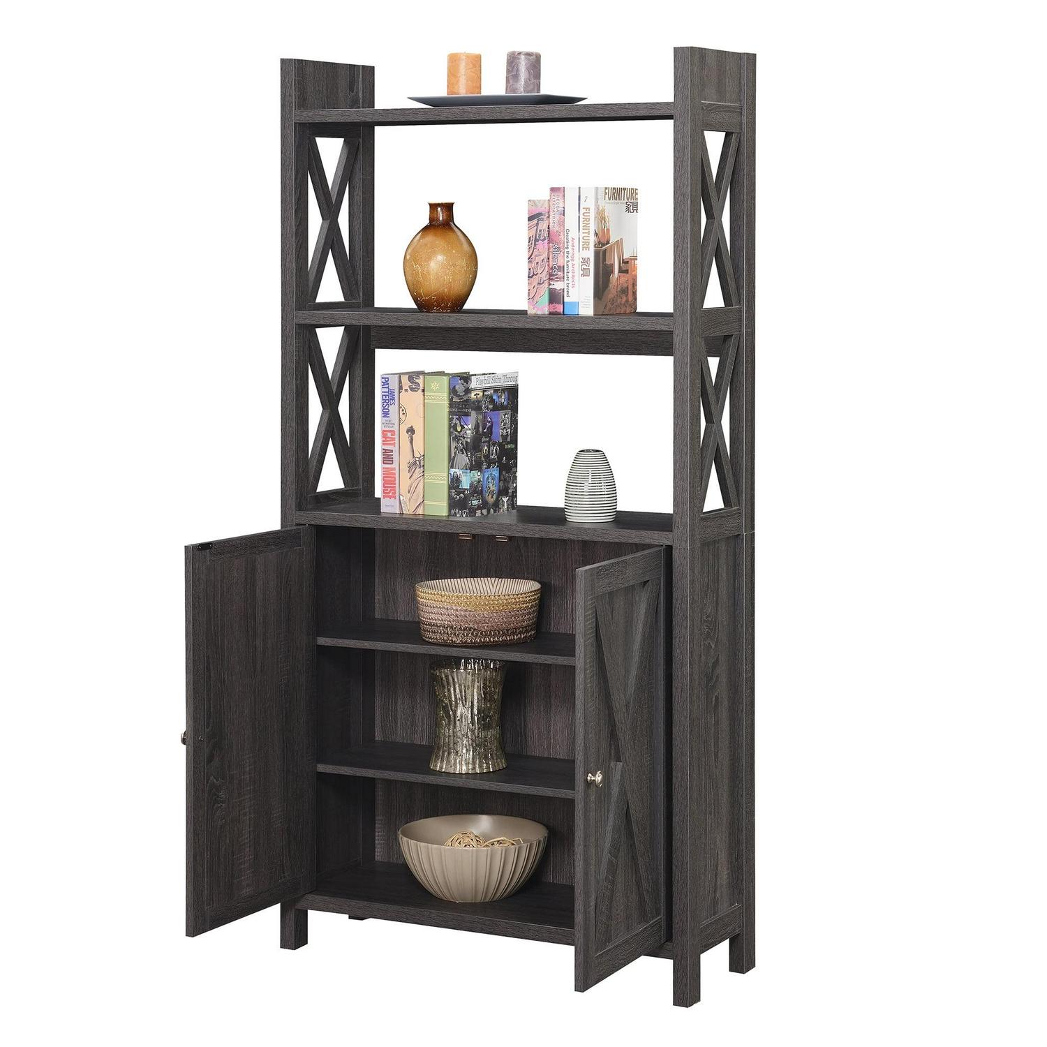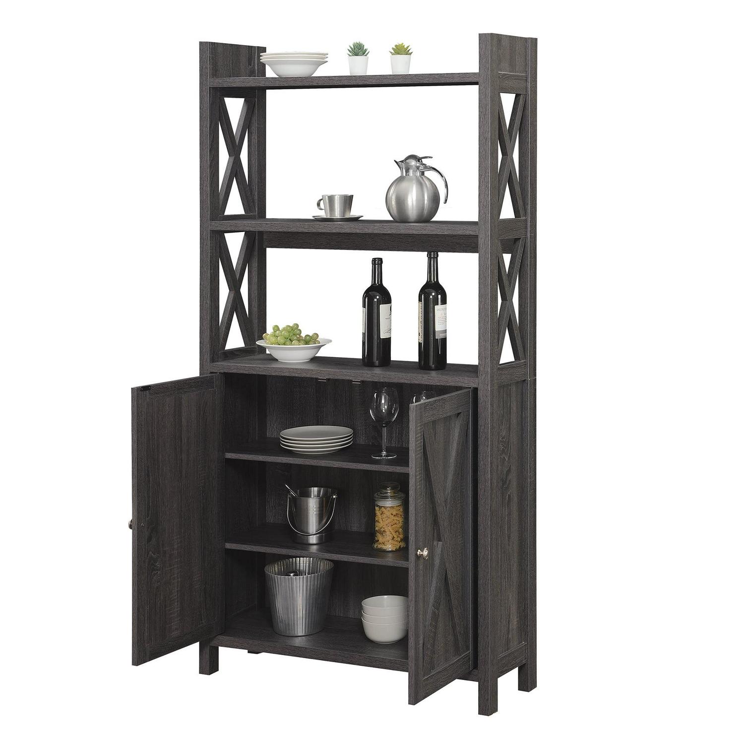 Convenience Concepts Oxford Kitchen Dining Storage Cabinet with Shelves, Weathered Gray
