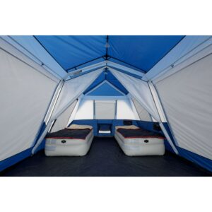 - Fits two queen airbeds or 10 campers in sleeping bags on the floor