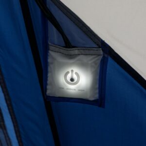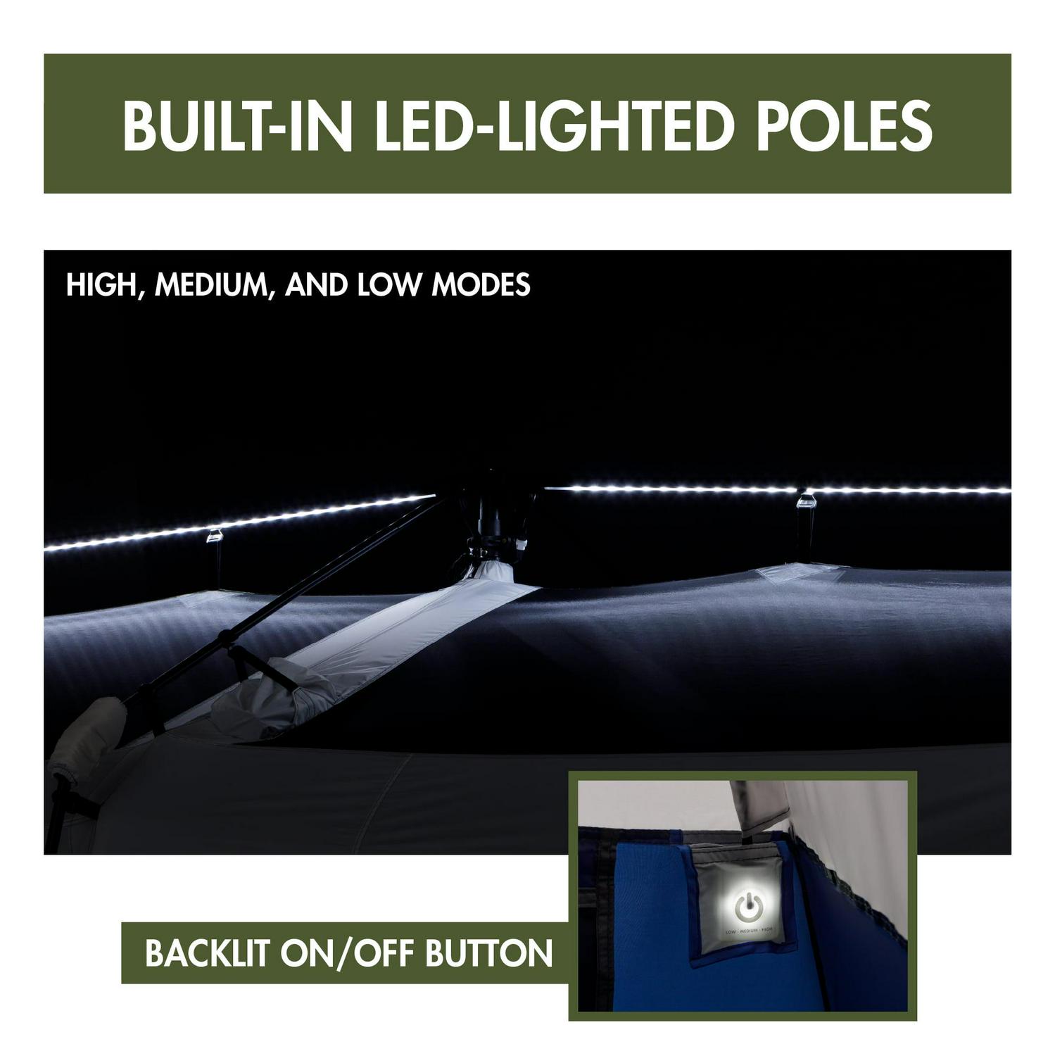 – Built-in LED lighted poles with low, medium, and high-power settings