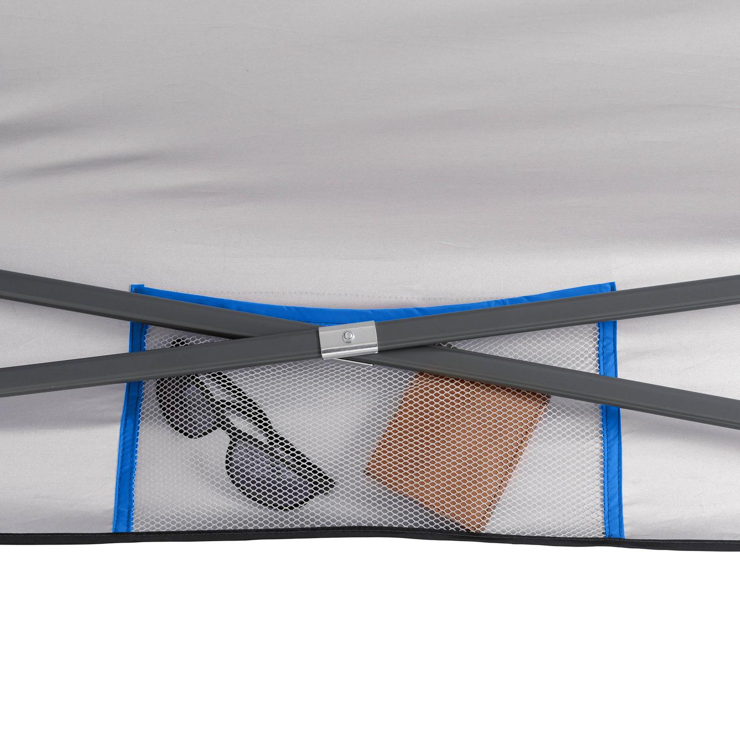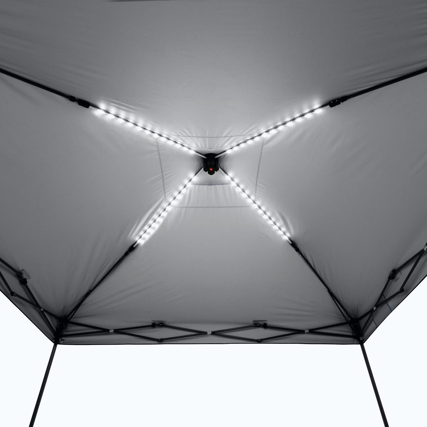 Make your tailgate, campout or backyard party even more enjoyable with the Ozark Trail 10 x 10 Instant Lighted Canopy. This canopy provides a true 100 square feet of cooling shade anywhere in just minutes. Simply extend the one-piece steel frame, attach the canopy top, extend the legs and you’re done. Adjust the shade as needed throughout the day with the easy push-button system that has three leg height adjustments. This canopy offers 50+ UV protection, so you re protected from the sun all day long. The LED lighted poles provide light even after the sun goes down. The canopy is equipped with two vents to help air circulate throughout the canopy. The mesh pocket helps keep small items like the lighting remote, sunglasses or cards within reach. With the instant setup technology you ll have your canopy up, tailgating and grilling burgers in no time! Carry and transportation are made quick and easy with the wheeled carry bag, so you ll be able to take your 10 x 10 Instant Lighted Canopy anywhere.