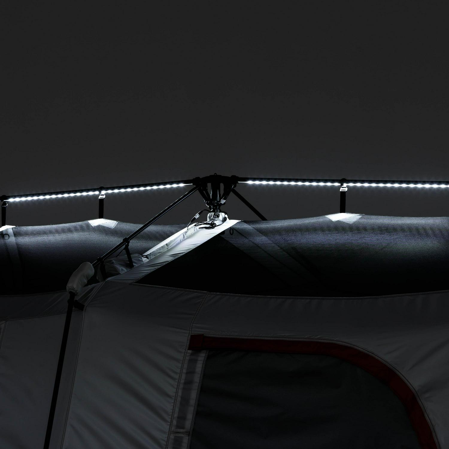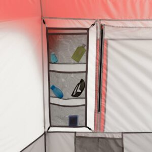 Step up your camping gear game with the Ozark Trail 8-Person Instant Cabin Tent with LED Lights and Bluetooth Speaker. This 8-person tent comes equipped with LED lighted poles to provide light during the early morning or evening hours. The tent also is equipped with a Bluetooth speaker so you can hook your smart phone up and play your favorite songs. The cabin tent includes a hanging organizer to keep important items off the floor and quickly accessible. The media pocket can be used for watching your favorite movies in the evening on your tablet. Instant frame technology makes setup and take down quick and easy – just unfold, lock the poles in place and stake down the tent and you’re ready to go. The Ozark Trail 8-Person Instant Cabin Tent with LED Lighted Poles and Bluetooth Speaker is perfect for family camping, the tent divider provides additional privacy and can be taken down easily.