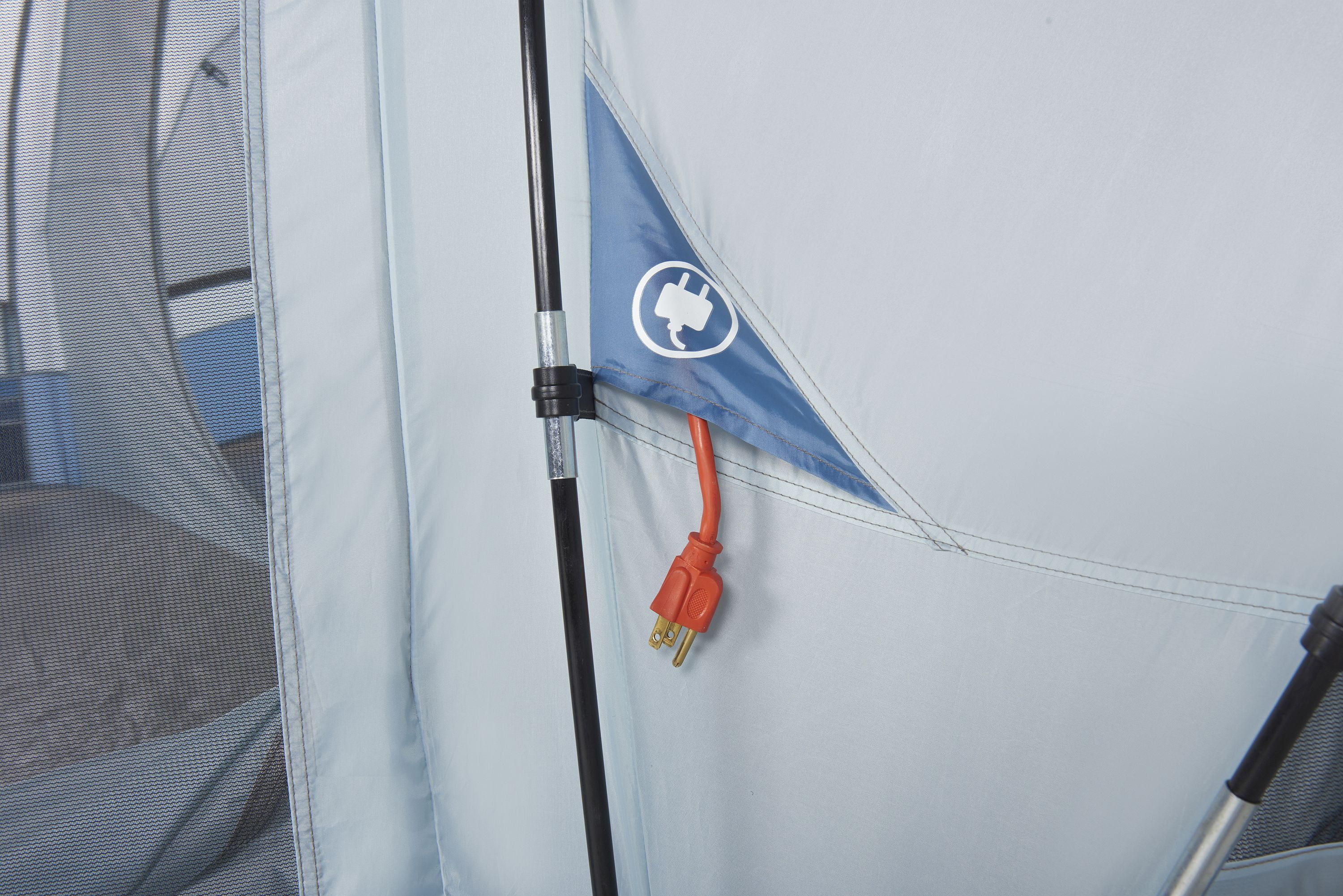 Help ensure that your family or group of friends are comfortable and safe on an outdoor adventure by setting up the Ozark Trail 14-Person Family Tent with 3 Doors. This model can be used as 2- or 3-room quarters, each with private access. It offers a front room that can be utilized as a screened porch so you can enjoy watching the sun go down in a bug-free zone. It can also be converted into a sleeping area. In this 14-person camping tent, you can use up to three queen-sized airbeds and still have ample space for storing extra gear. It includes an e-port for an extension cord and a media pocket to entertain the crew. Interior convenience pockets also help everyone keep track of their smaller items while keeping the tent neat and tidy. This Ozark Trail Family Tent offers 203 sq. ft. of space and has eight windows and a mesh roof for optimal ventilation. It requires only two adults to set up.