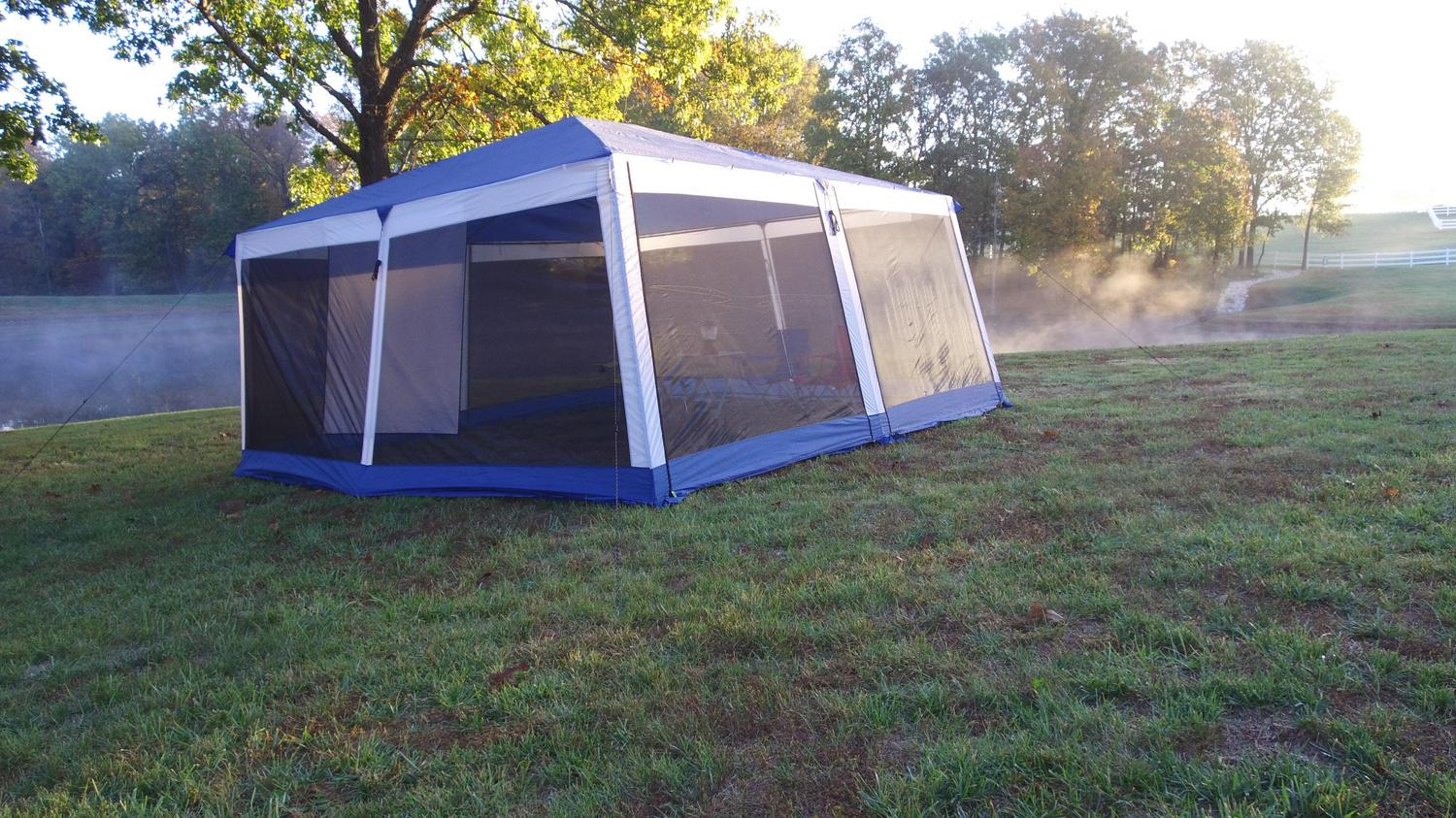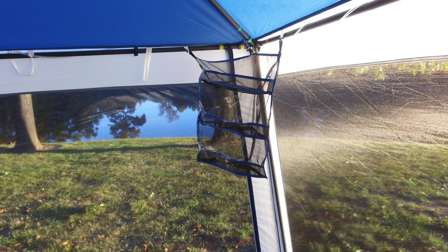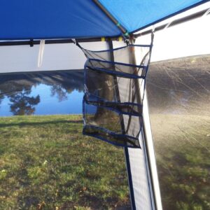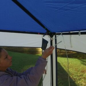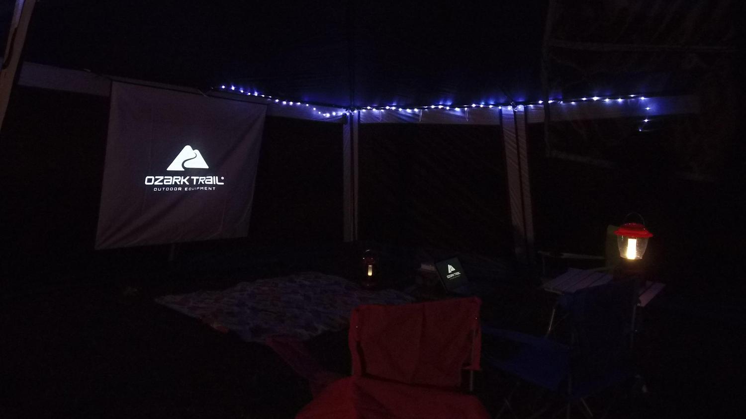 The Ozark Trail Grand Gazebo is an excellent choice for your outdoor needs. Color-coded framing system makes set-up a breeze. This Grand Gazebo stands at 15′ x 15′ and the 102 inch center height offers added headroom for a more comfortable experience. Your gazebo has taped seams for added weather protection and is enclosed fully with mesh walls, letting you stay connected with the outdoors while keeping the bugs at bay. Your gazebo comes included with a hanging Movie Screen, three rope lights, and two corner hanging storage shelf systems. The Ozark Trail Grand Gazebo is everything you needed for your outdoor entertaining needs. Day or night.