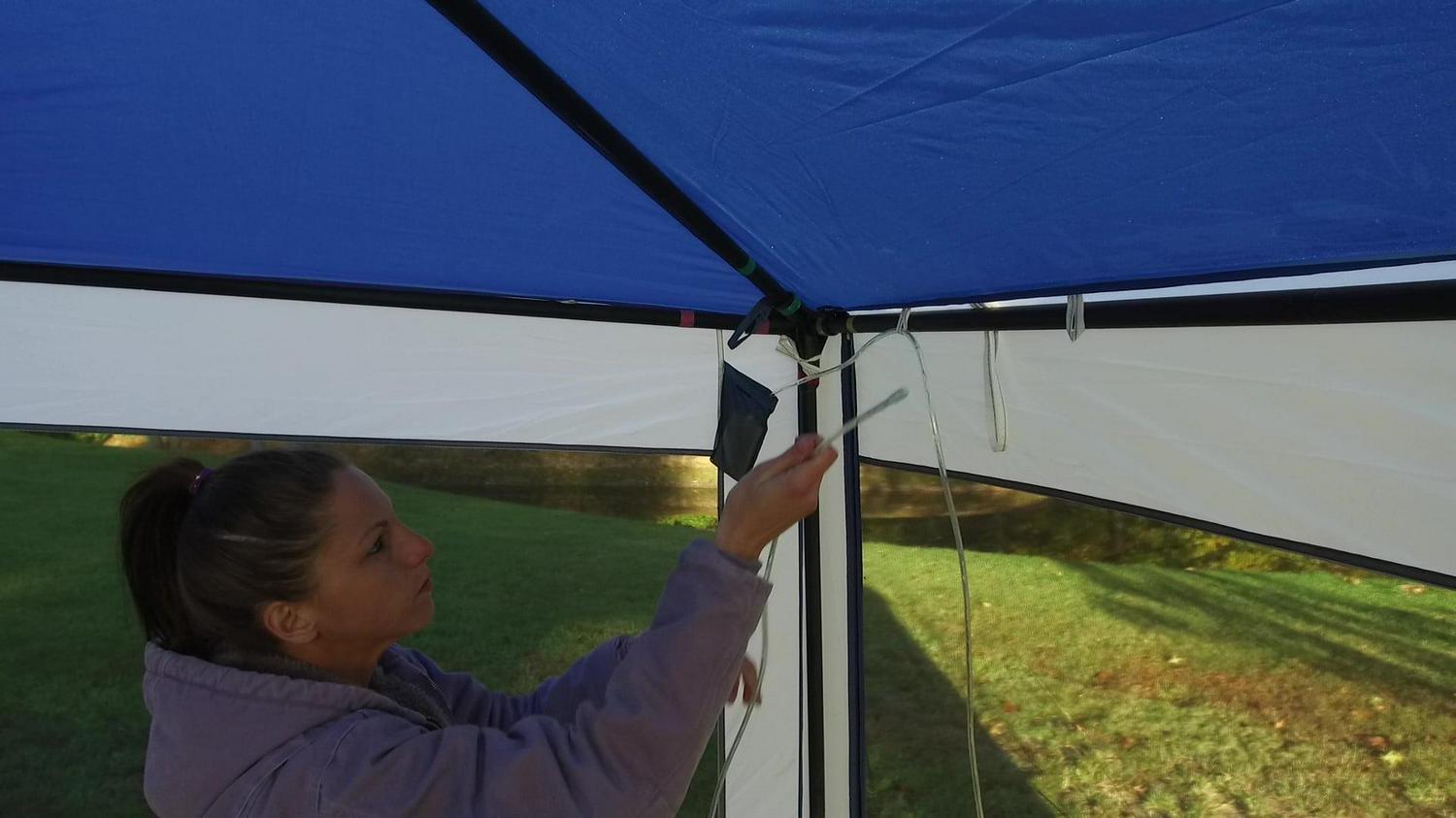 Ozark Trail 15′ x 15′ Screened Blue and White Hexagon Gazebos