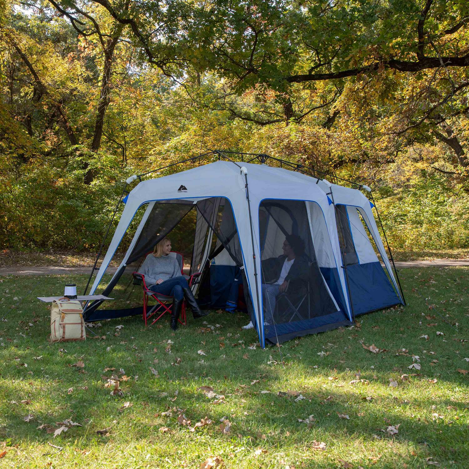 – Includes two 4-person cabin tents, one 15′ x 9′ instant shelter and one screen room