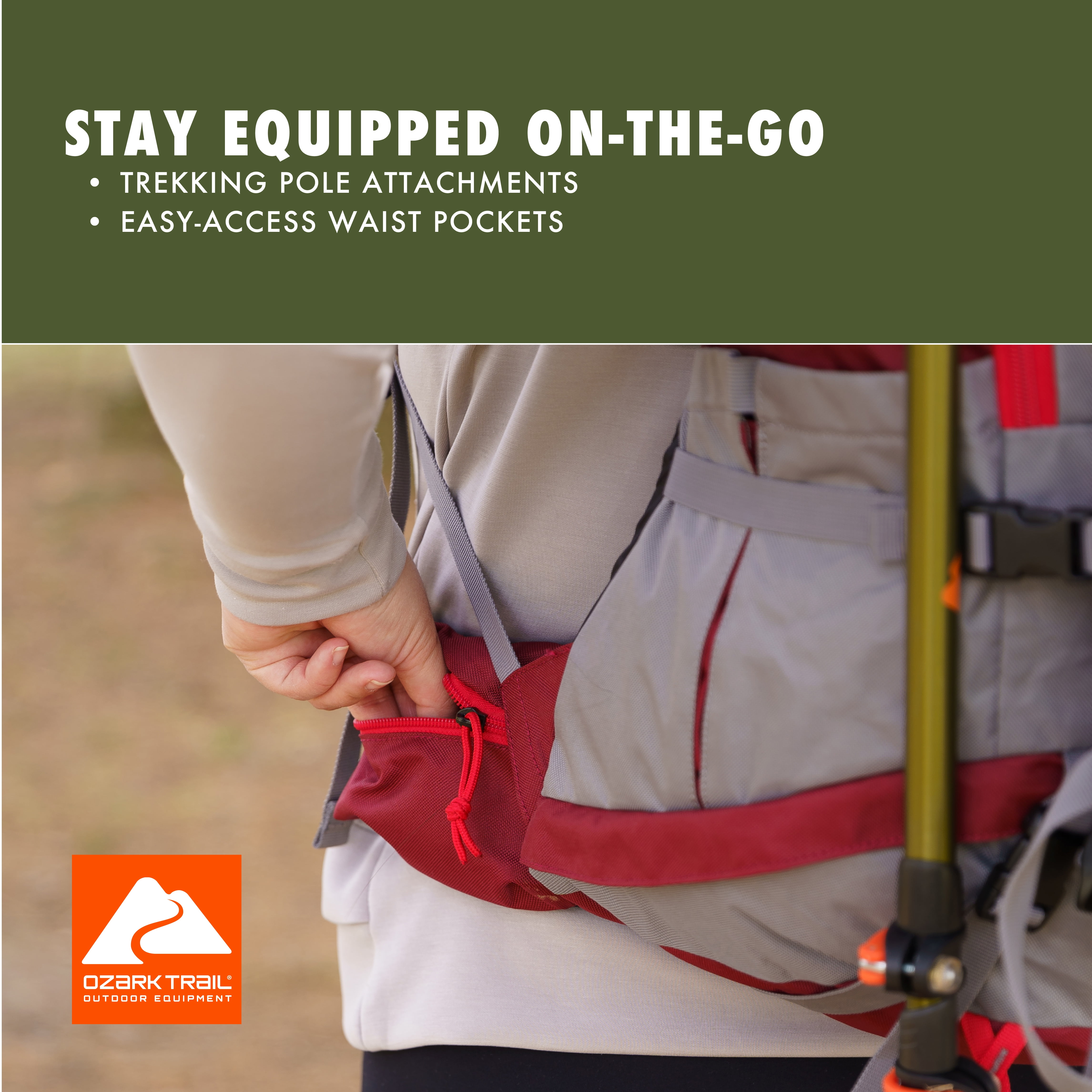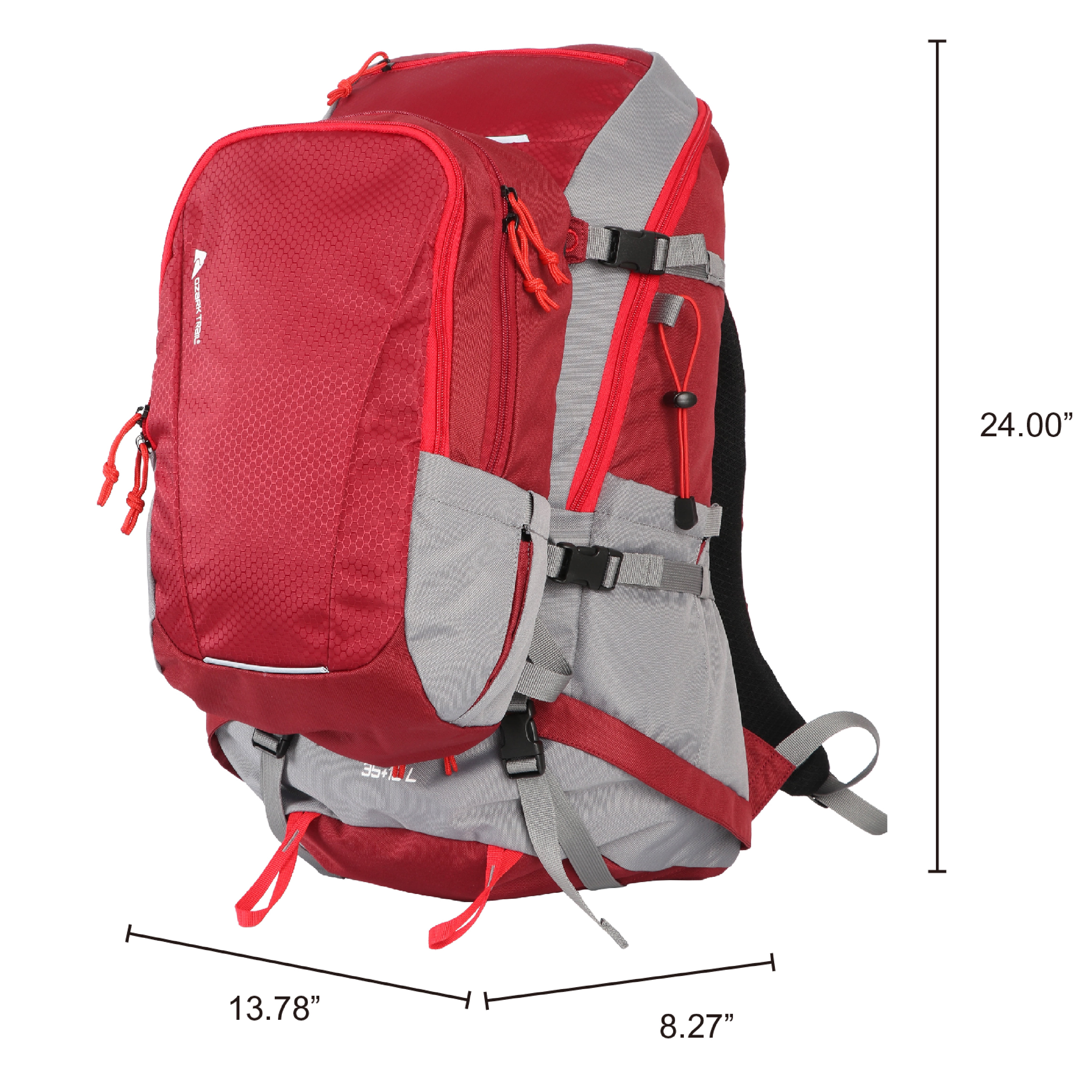 Ozark Trail Backpack Set, 35 Liter Hiking Backpack with Detachable 15 Liter Daypack, Red
