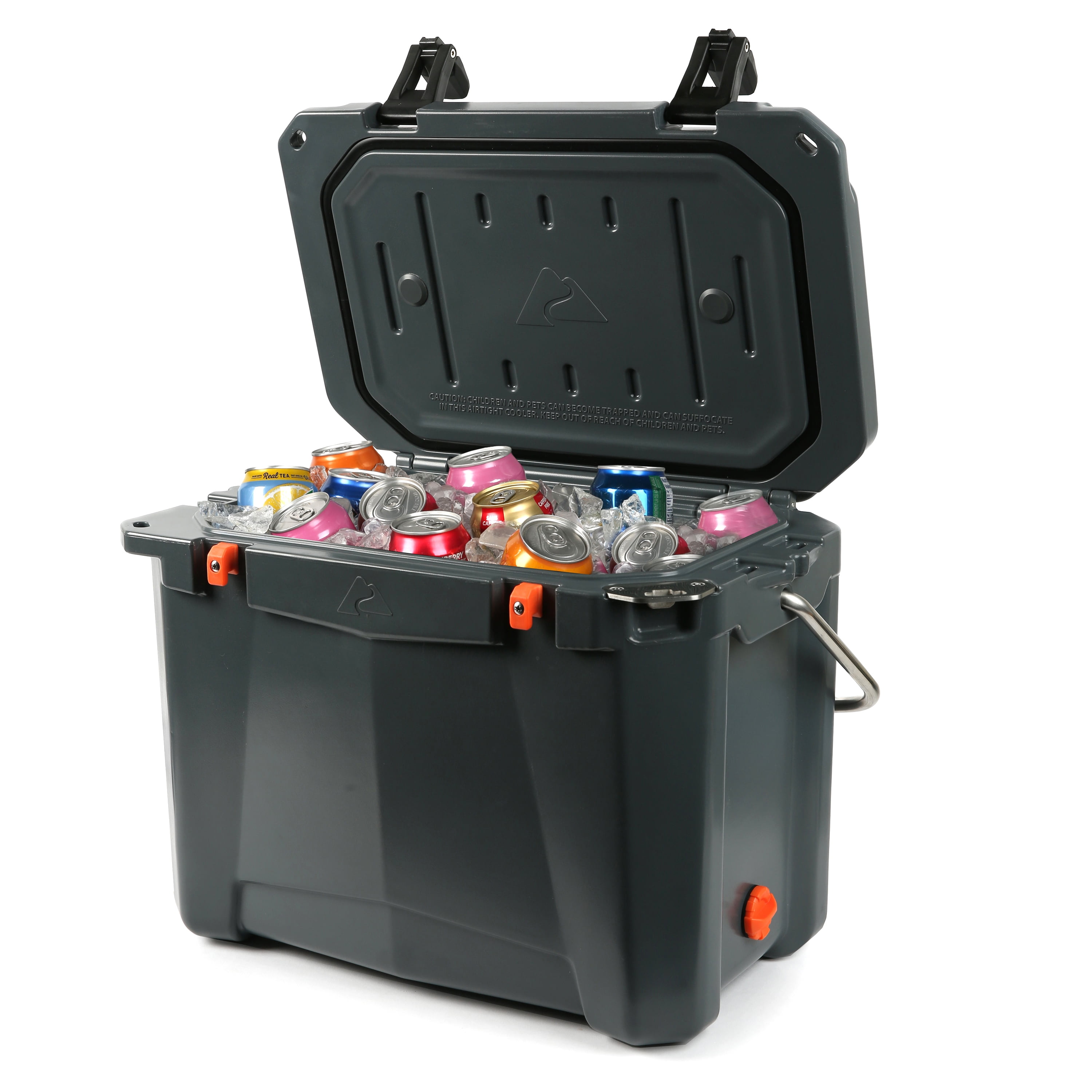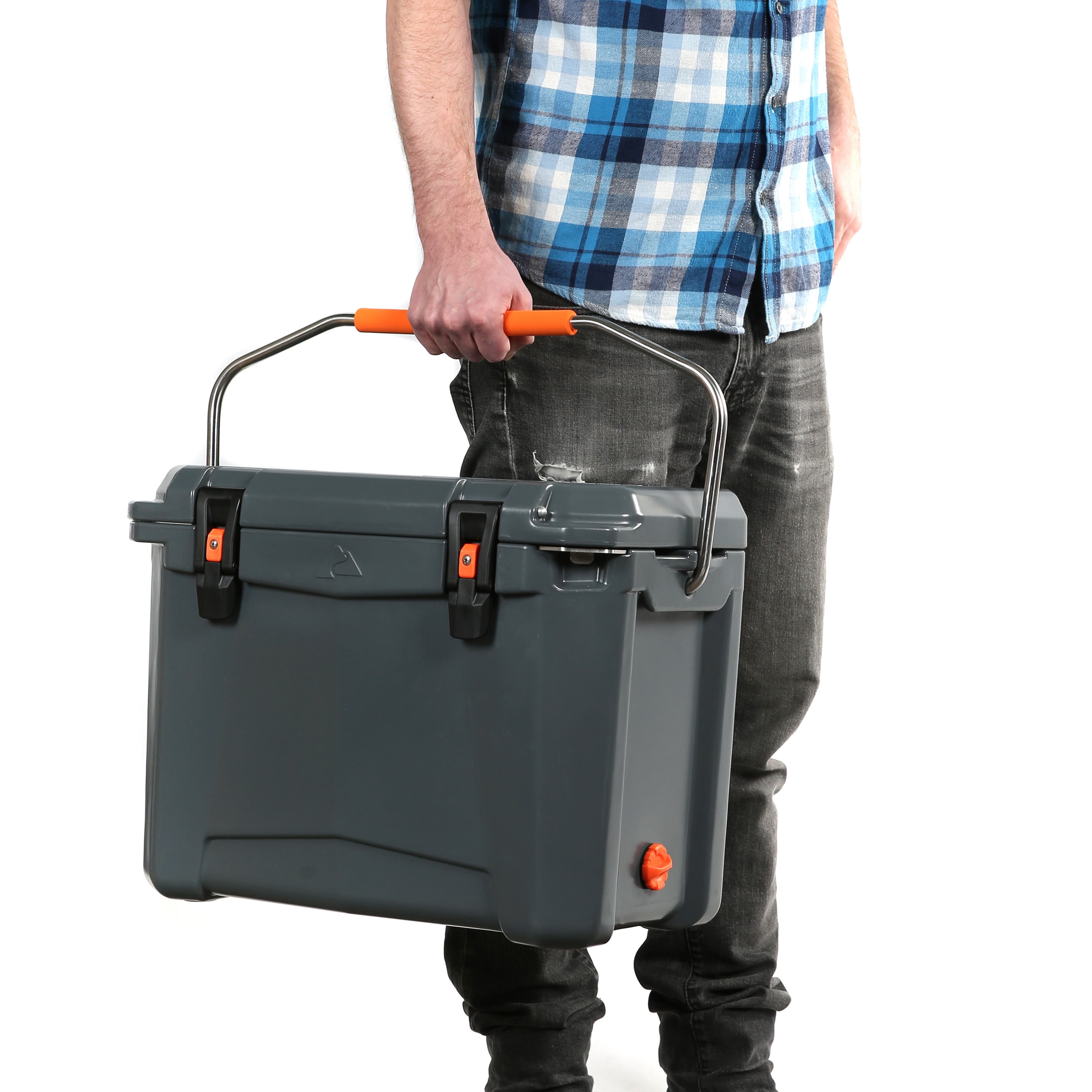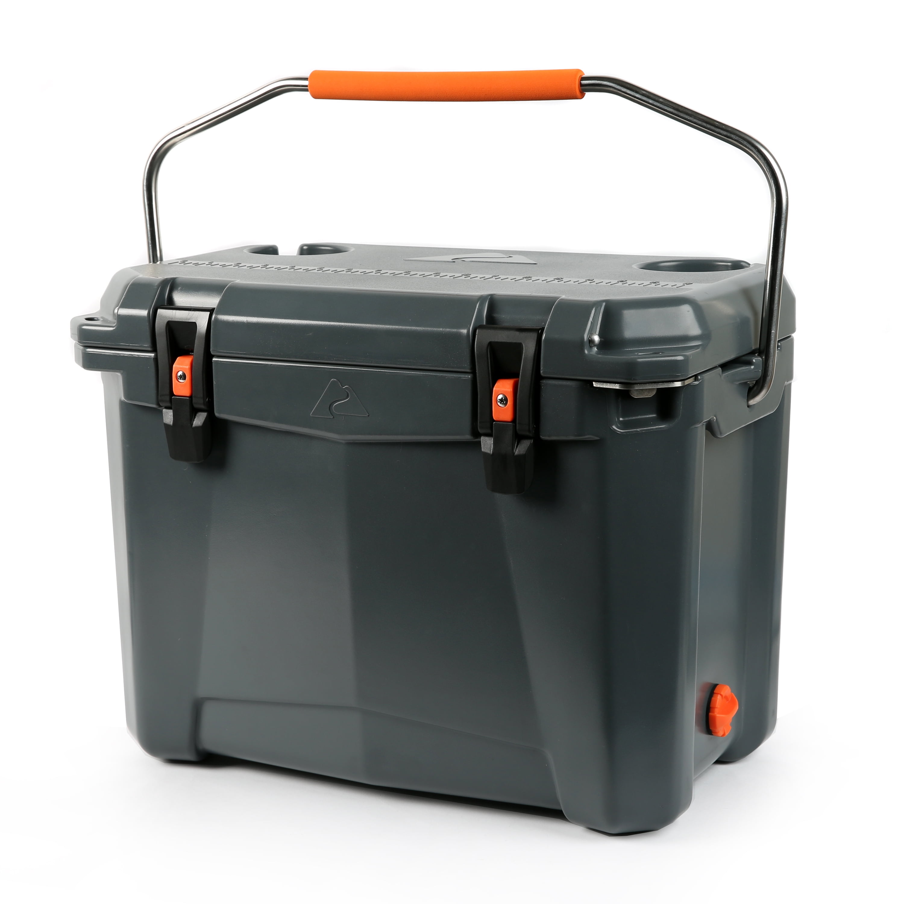 Ozark Trail 26 Quart High Performance Roto-Molded Cooler with Microban®, Grey Premium insulation keeps ice for days Portable cooler is roto-molded, seamless, one-piece construction with UV-resistant exterior Air-tight, super-seal gasket keeps the cold in and the heat out Includes new, easy open cam latches Heavy duty handles with comfort grip Industrial strength, stainless steel locking plate with built-in bottle opener Certified bear-resistant by the Interagency Grizzly Bear Committee With fish ruler and 2 drink holders on lid Limited 5 Year Warranty Check out all Ozark Trail products! ‘s Ozark Trail Brand has ice chests and coolers for all of your needs. Our range includes soft and hard coolers for camping, hydrating, toting and rolling – Ozark Trail can keep you cool all summer long! Assembled Product: Assembled Product: Assembled Product Height 13inx15.5inx21.25in. Product Weight 14.66 lb. Coolers holds 24 cans. Color: Gray
