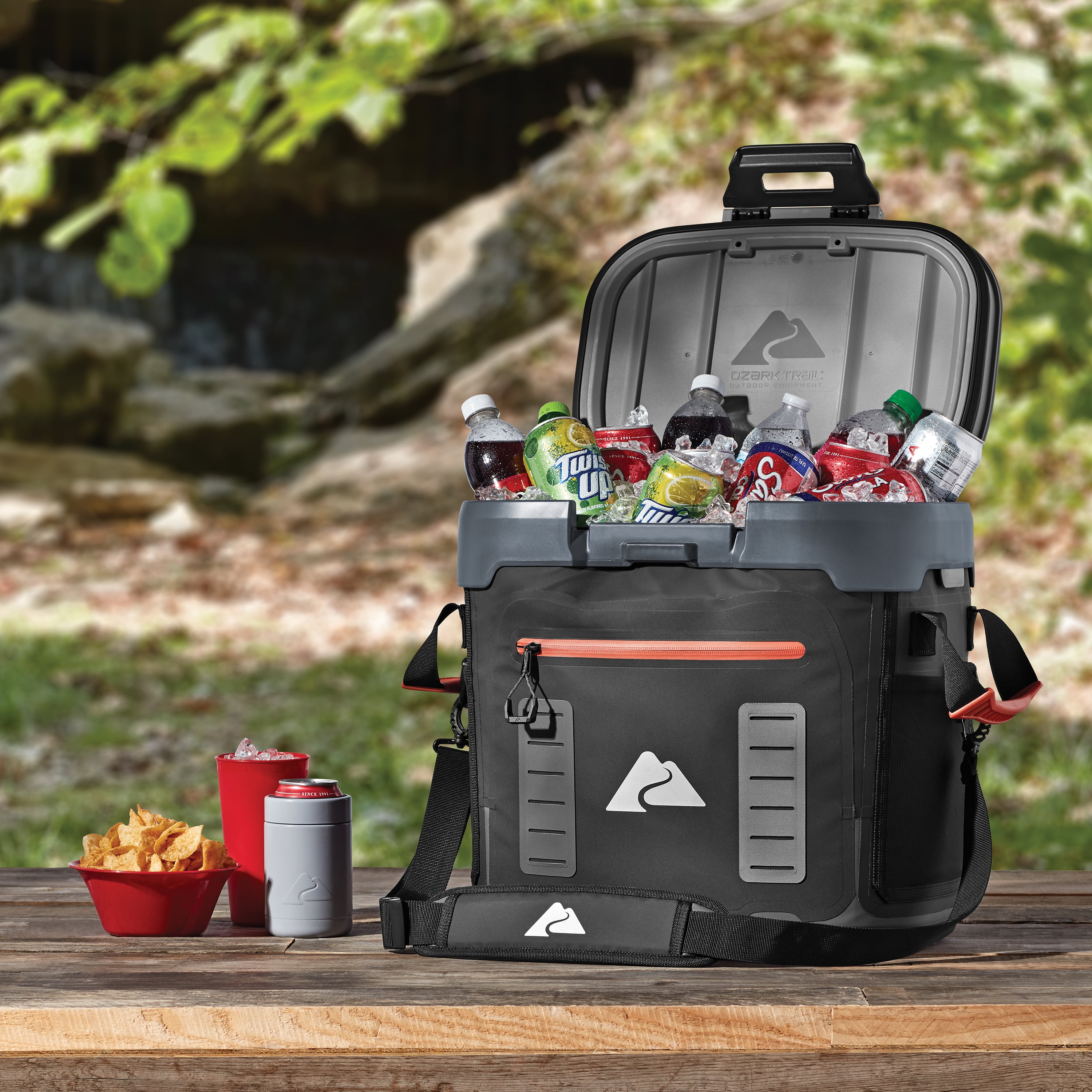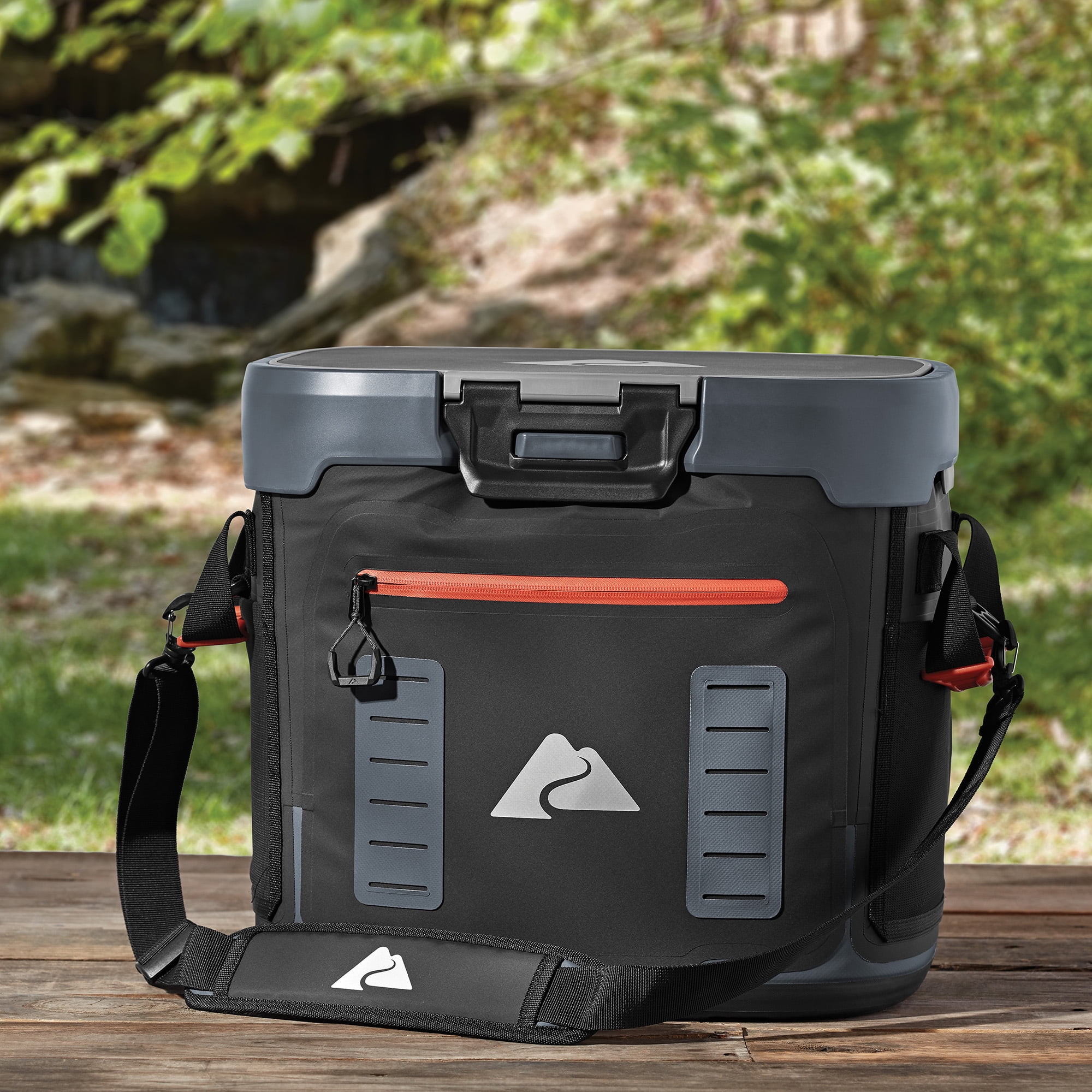 Ozark Trail 36 Can Welded, Leak Proof Zipperless, Air-Tight, Hard-Sided Cooler, Black Multi-layered, high performance thermal insulation keeps ice for days Leak proof, air-tight seal Removable hard liner Waterproof, puncture resistant exterior Water repellant zippered pocket Daisy Chain attachments on each side Exterior mesh pockets on each side Molded exterior carry handles Removable, adjustable shoulder strap with shoulder pad Rugged, waterproof EVA molded base with extra foam insulation Limited 5 Year Warranty