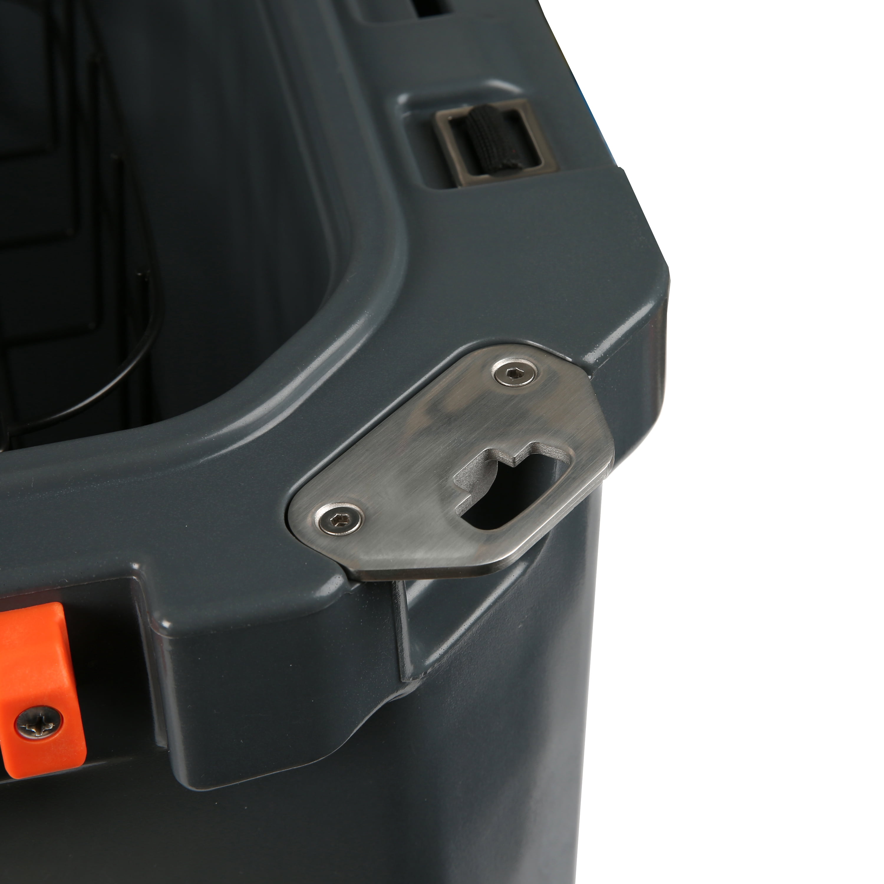 The Ozark Trail 52 Quart High Performance Roto-Molded Cooler keeps ice for days, has a UV ray resistant exterior and features heavy-duty, seamless, one-piece construction with a premium blend of thick polyurethane insulation. Microban® is built-in protection that is guaranteed to last the lifetime of the product. It not only helps to prevent the build-up of bacterial odors and stains, but also makes the Roto Cooler easier to clean. This Ozark Trail 52 Quart Cooler features our heavy duty stainless steel locking plate with built-in bottle opener and our super-seal gasket to ensure that the cold stays in and the heat stays out. Our product also features new easy-open cam latches, garden hose compatible, oversized drain with threaded plug, wire basket, 4 drink holders, reversible anti-skid/slide feet, built-in fish ruler and heavy-duty handles with comfort grip for easy carrying. And just in case you run into any trouble, this Roto Cooler has been tested by the Interagency Grizzly Bear Committee and is certified bear-resistant. Assembled Product: 17.5″x 17″x28.5.” Assembled Product Weight 28.73 lb. Color: GrayColor: Gray