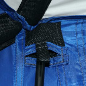– Durable 150D polyester with water resistant coating, UPF 50, and reinforced panels on roof