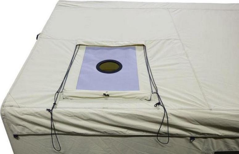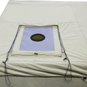 - Integrated stove jack with zippered cover fits 5″ diameter stove pipes