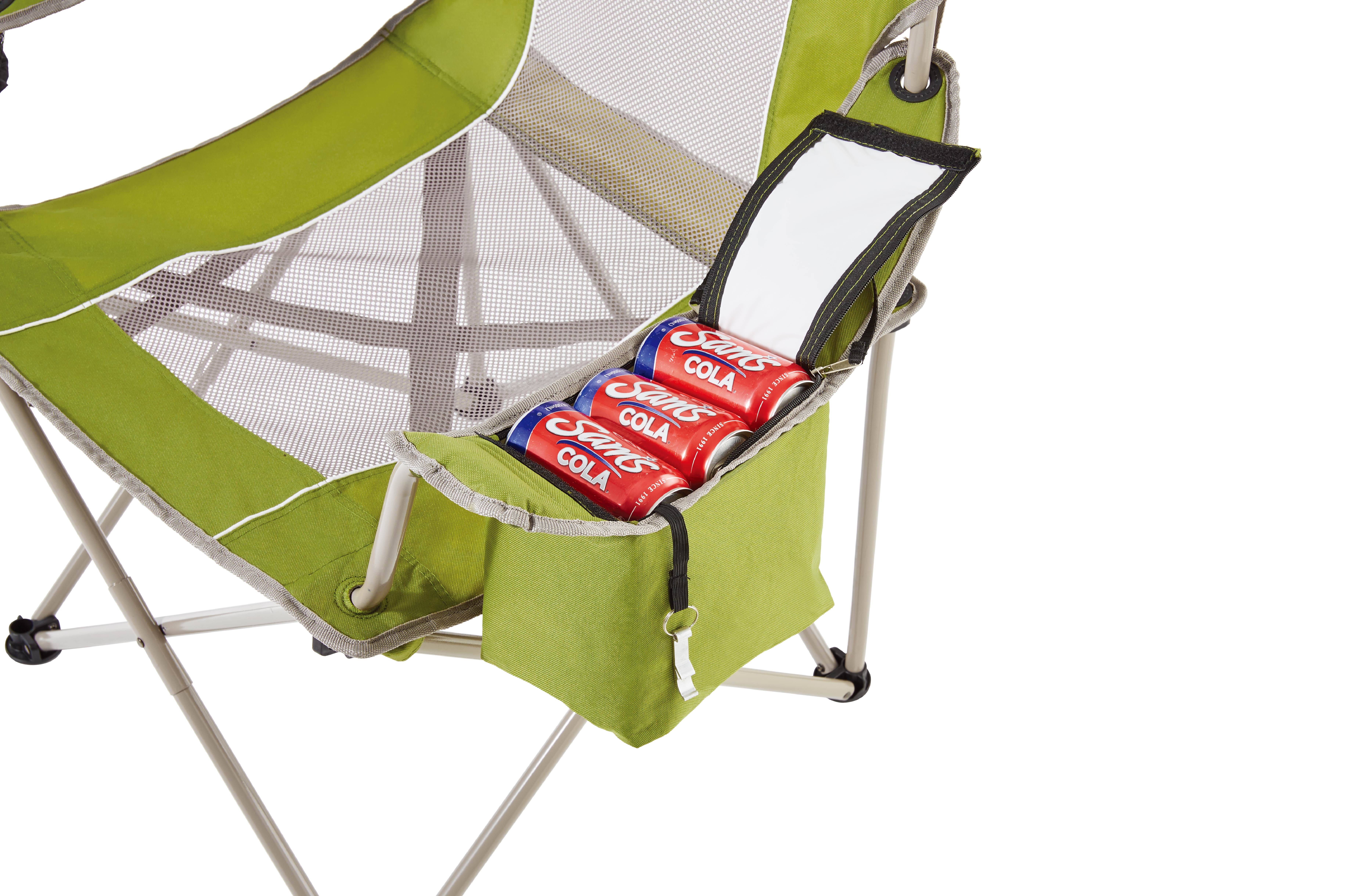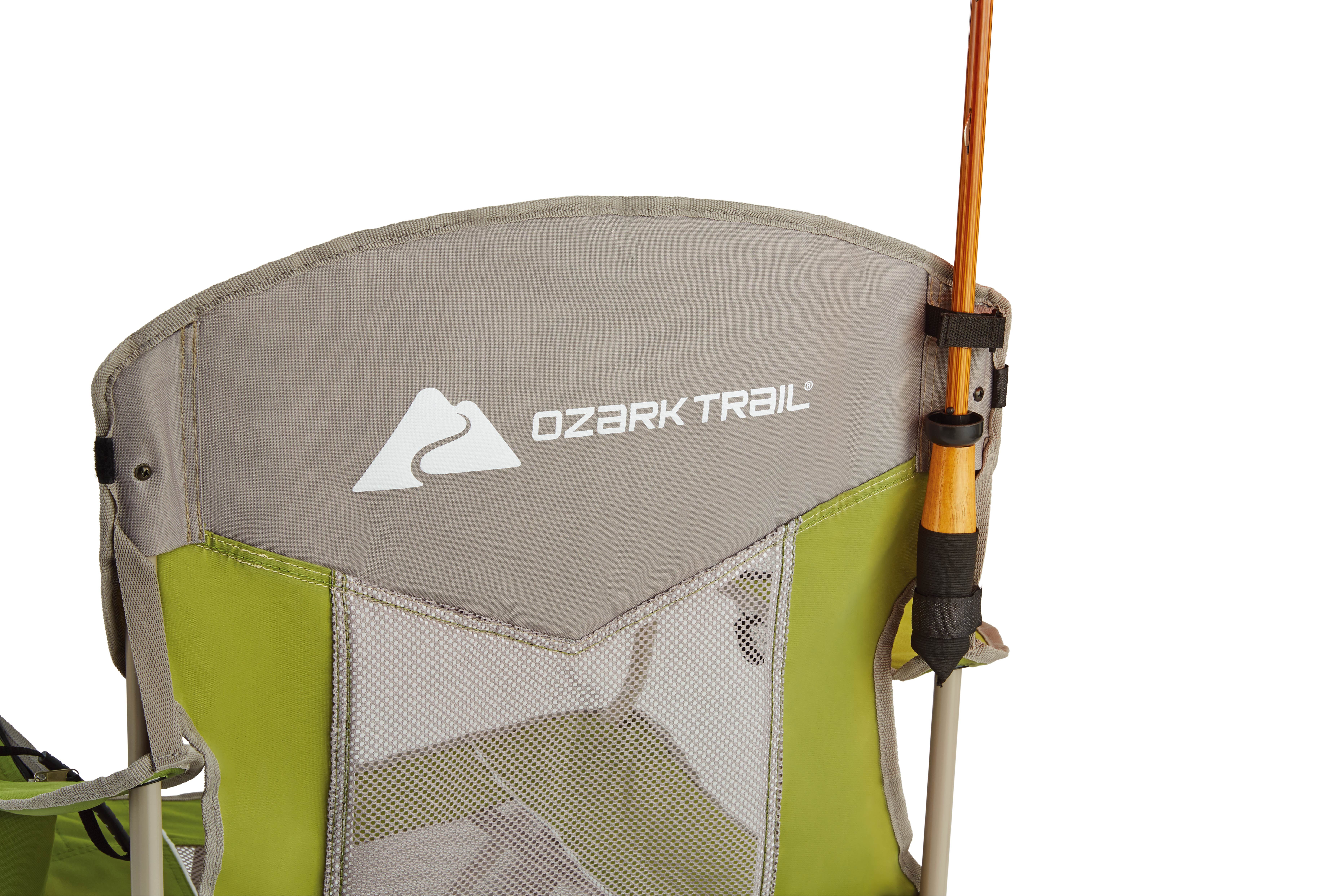 Ozark Trail Adult Oversized Mesh Camp Chair with Cooler, Green & Gray