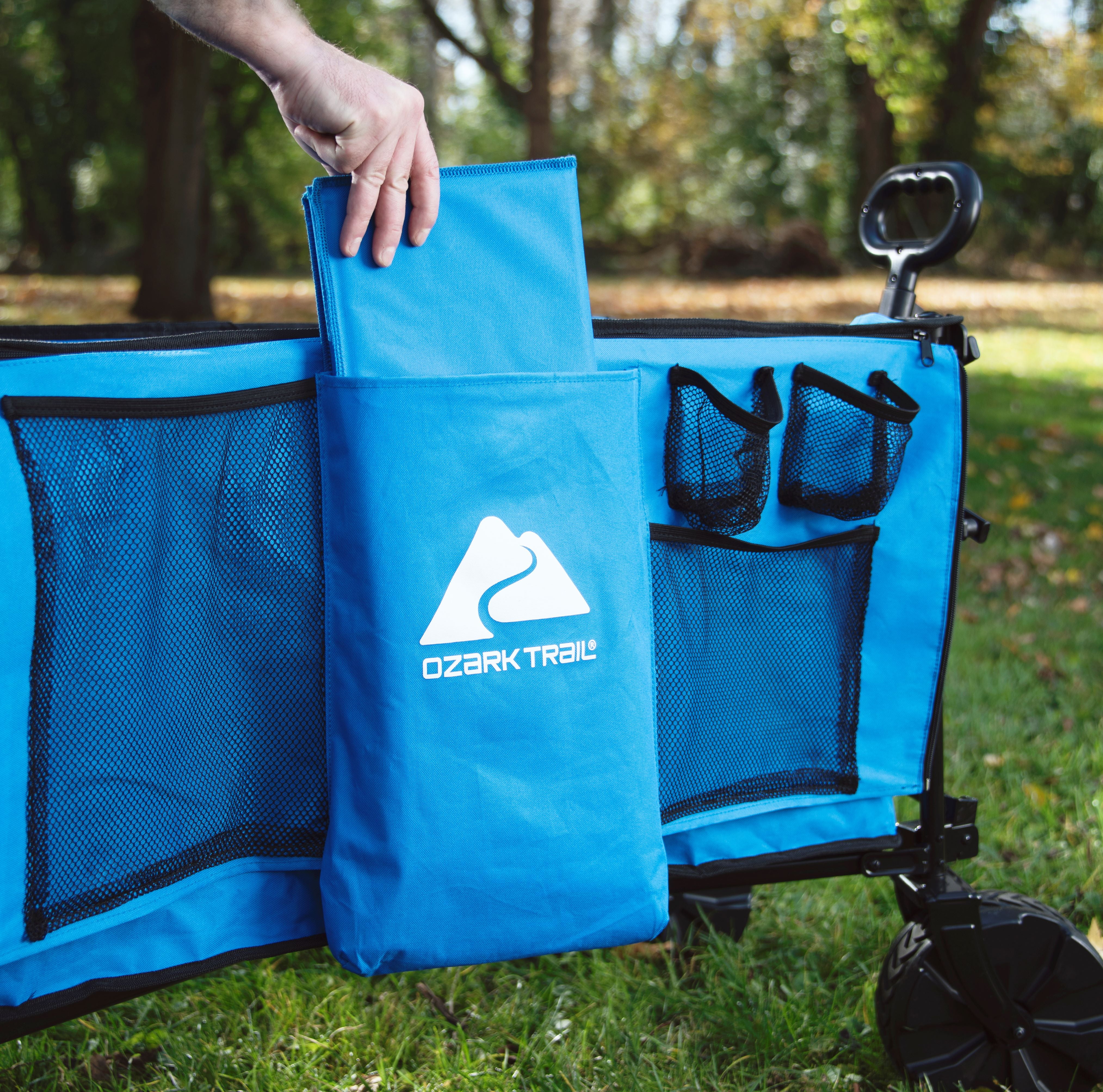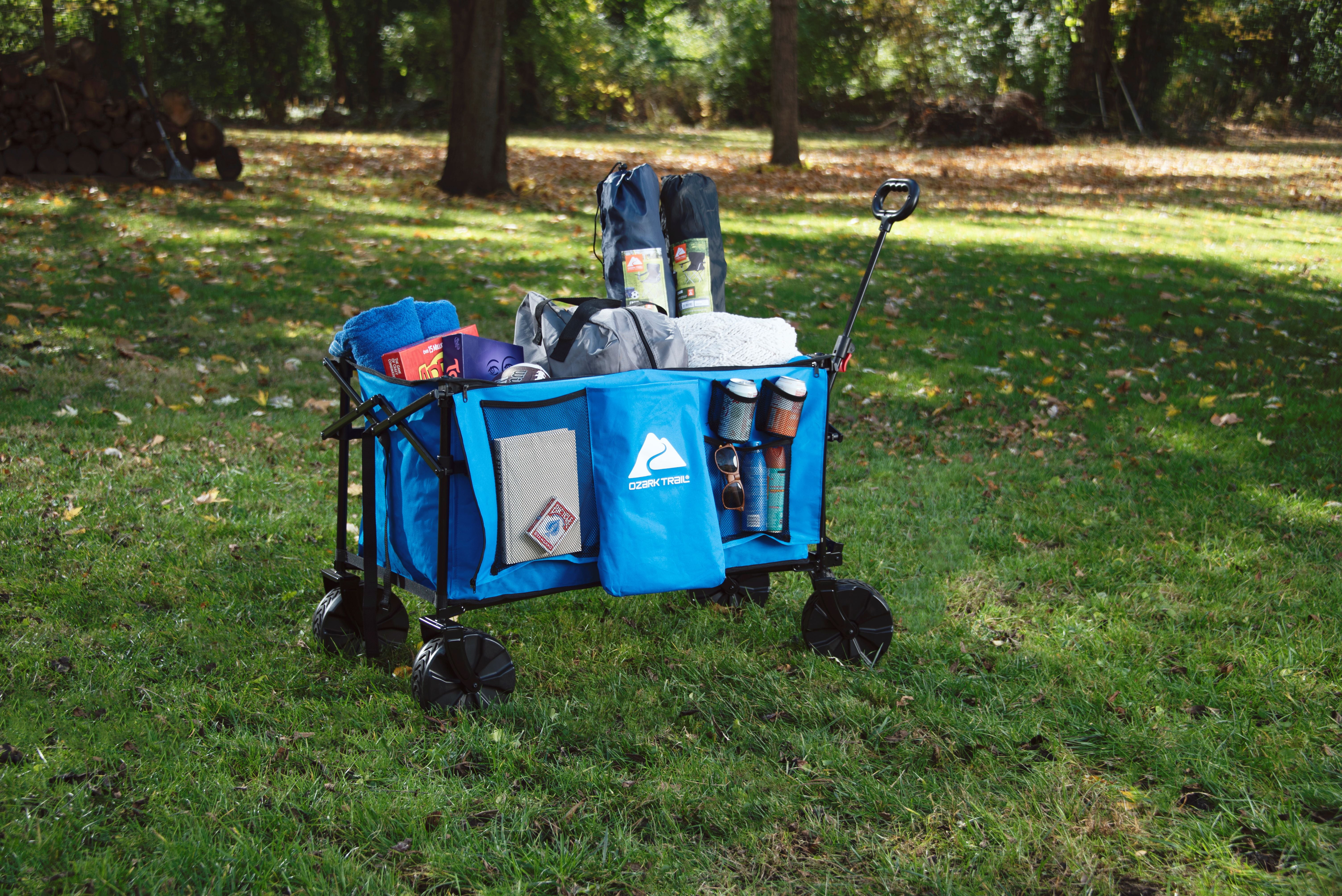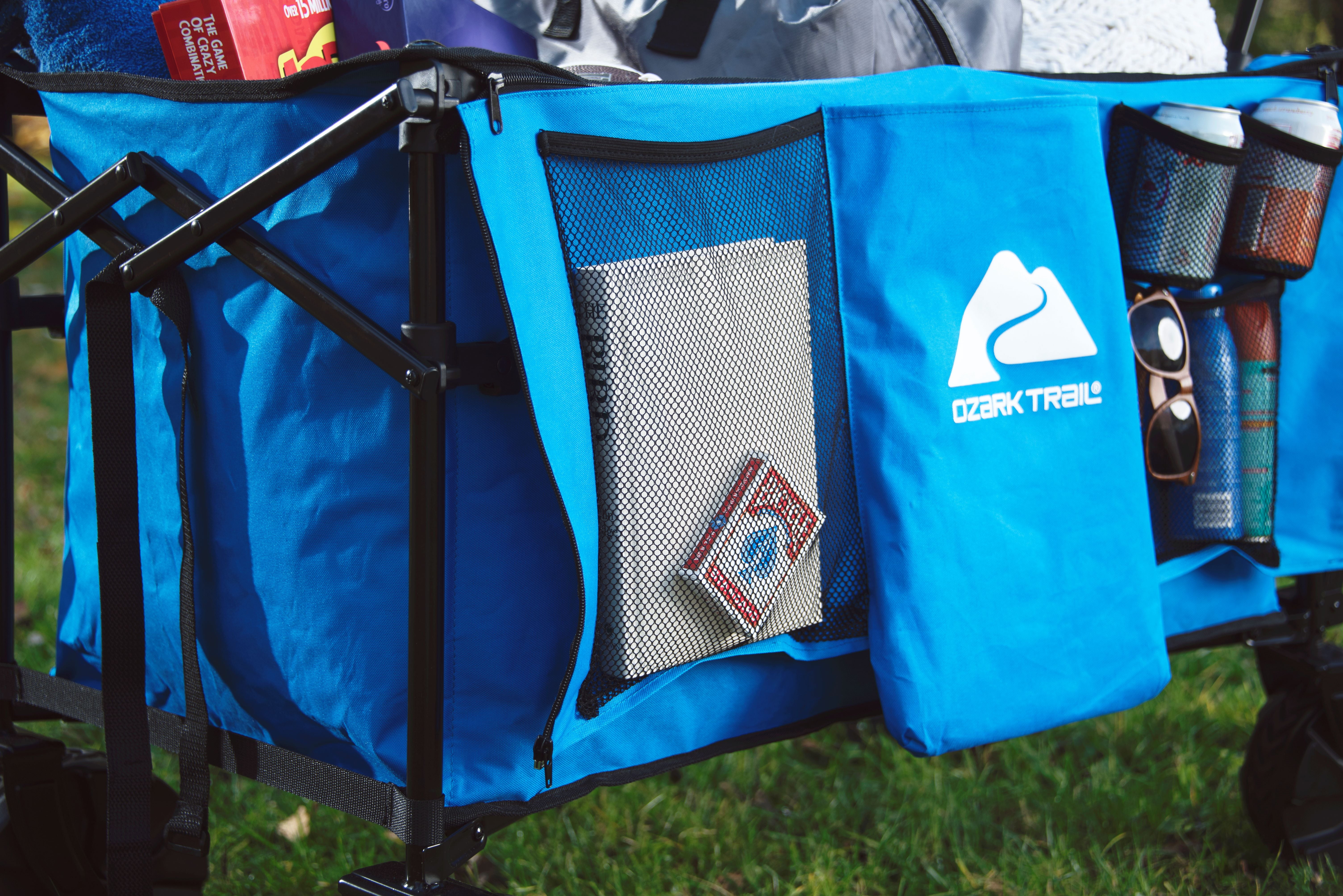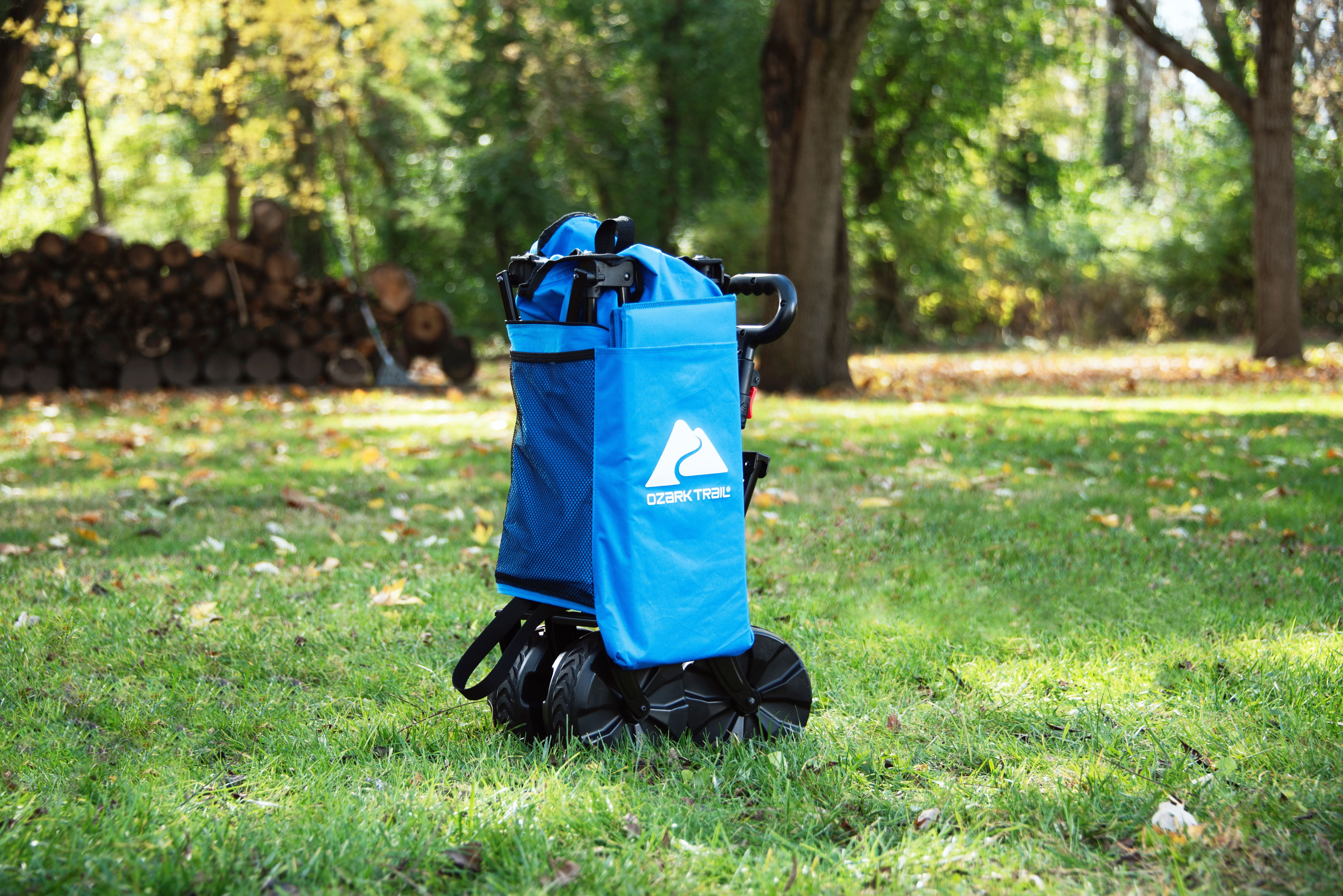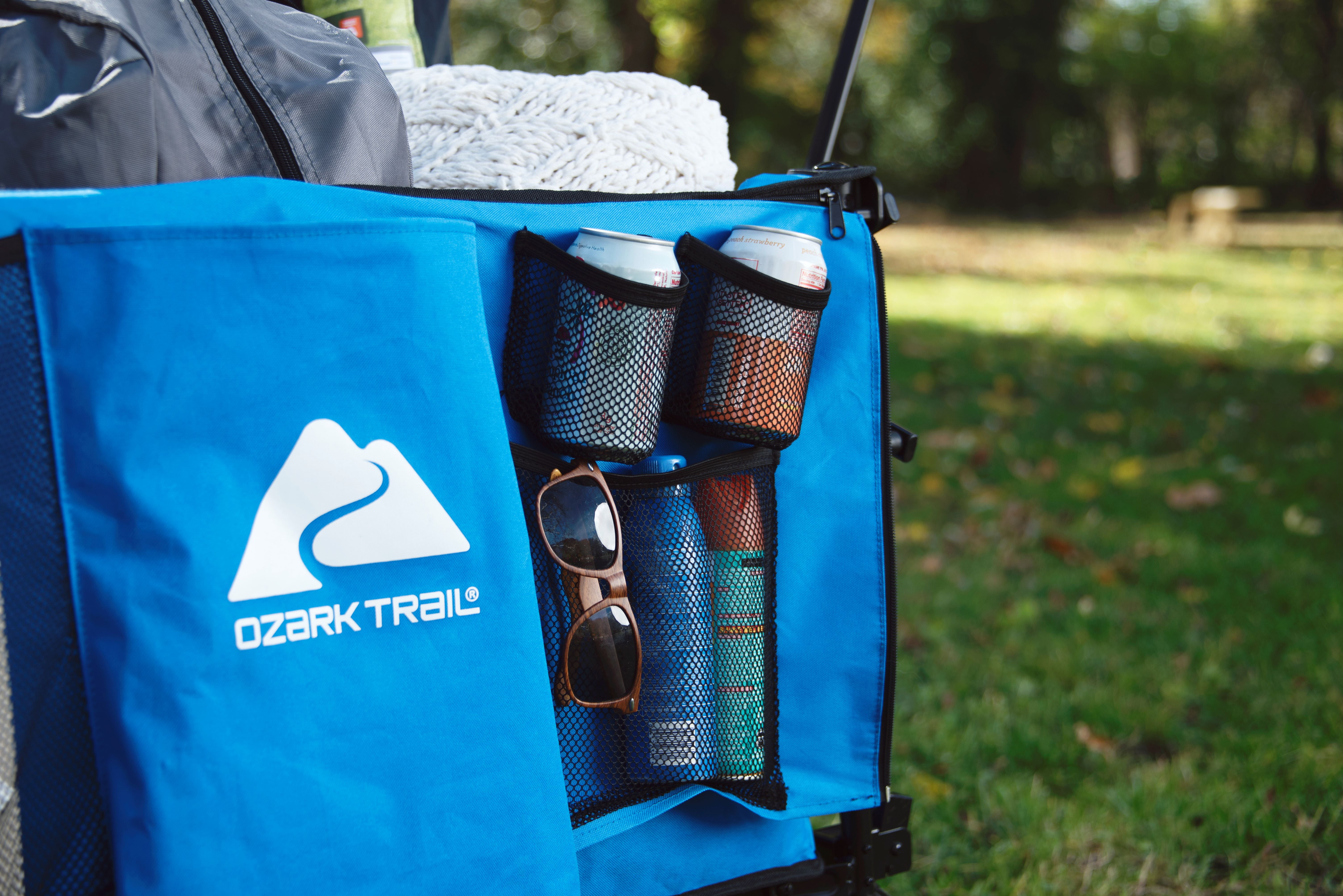 Make hauling all your essential items easier with the Ozark Trail All-Terrain Big Bucket Cart. Designed with a durable frame and a deeper basket than similar products, this cart can transport up to 260 pounds of items. Additionally, this wagon features a side organizer for extra storage. And to make towing easier, the telescoping handle can be lengthened or shortened to your perfect height. This wagon is also designed with heavy duty wheels that can traverse over a variety of terrains. When you need to store the wagon, it folds down to a small size that will fit perfectly in your trunk or the garage. Looking for a way to make hauling items easier and with fewer trips? Whether you’re camping, tailgating, or just hauling things around the house, choose the Ozark Trail All-Terrain Big Bucket Cart and make transporting items easier. Adventure is where memories are made, whether it’s campouts in the back yard with the kids, Saturdays at the river with friends, or a week in the wilderness alone. Ozark Trail helps you and your family create everyday adventures with gear and accessories built with you in mind. From backpacks to tents, they’re rugged, dependable, and priced to be practical. Because adventure is not a destination, it’s a lifestyle. Blue