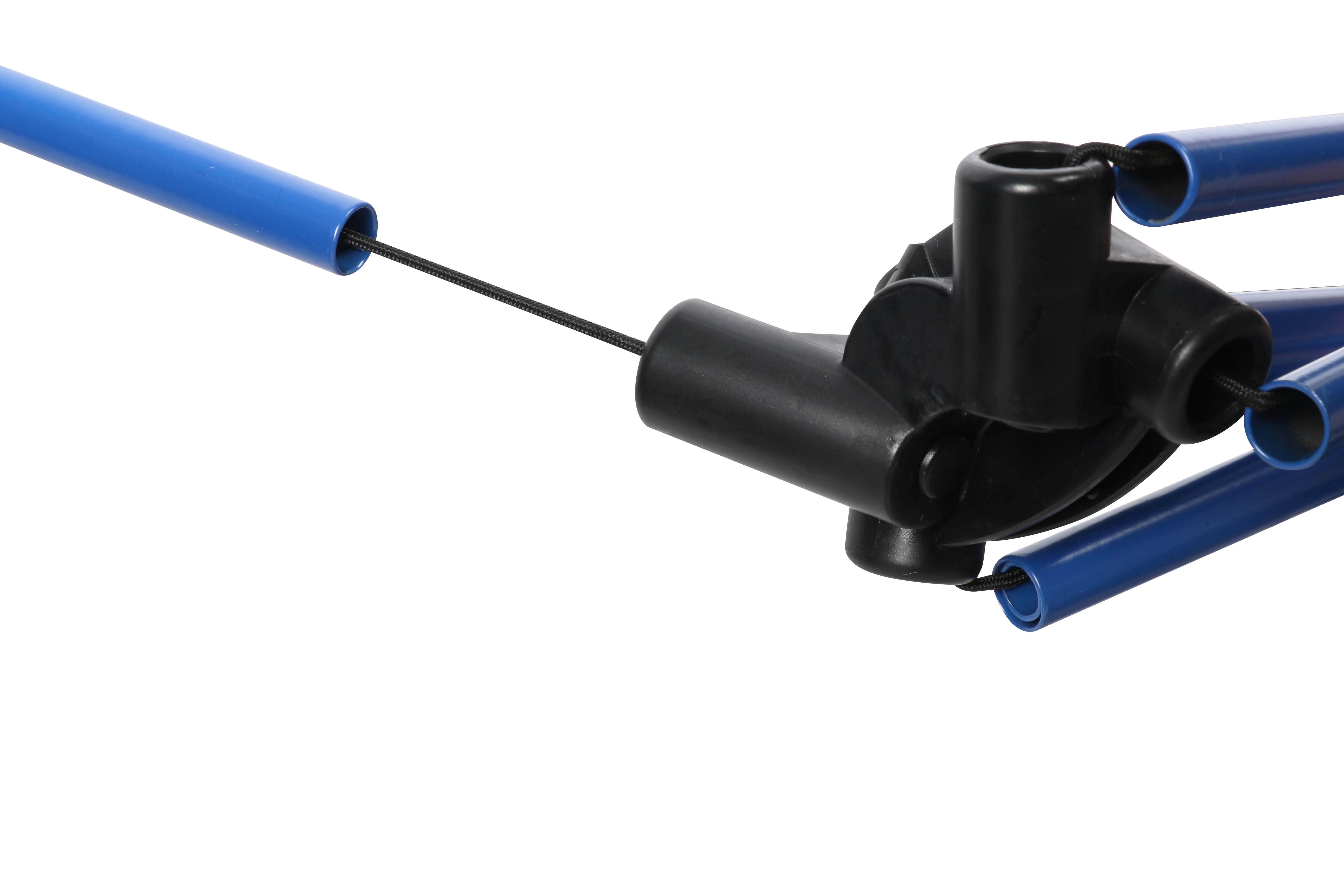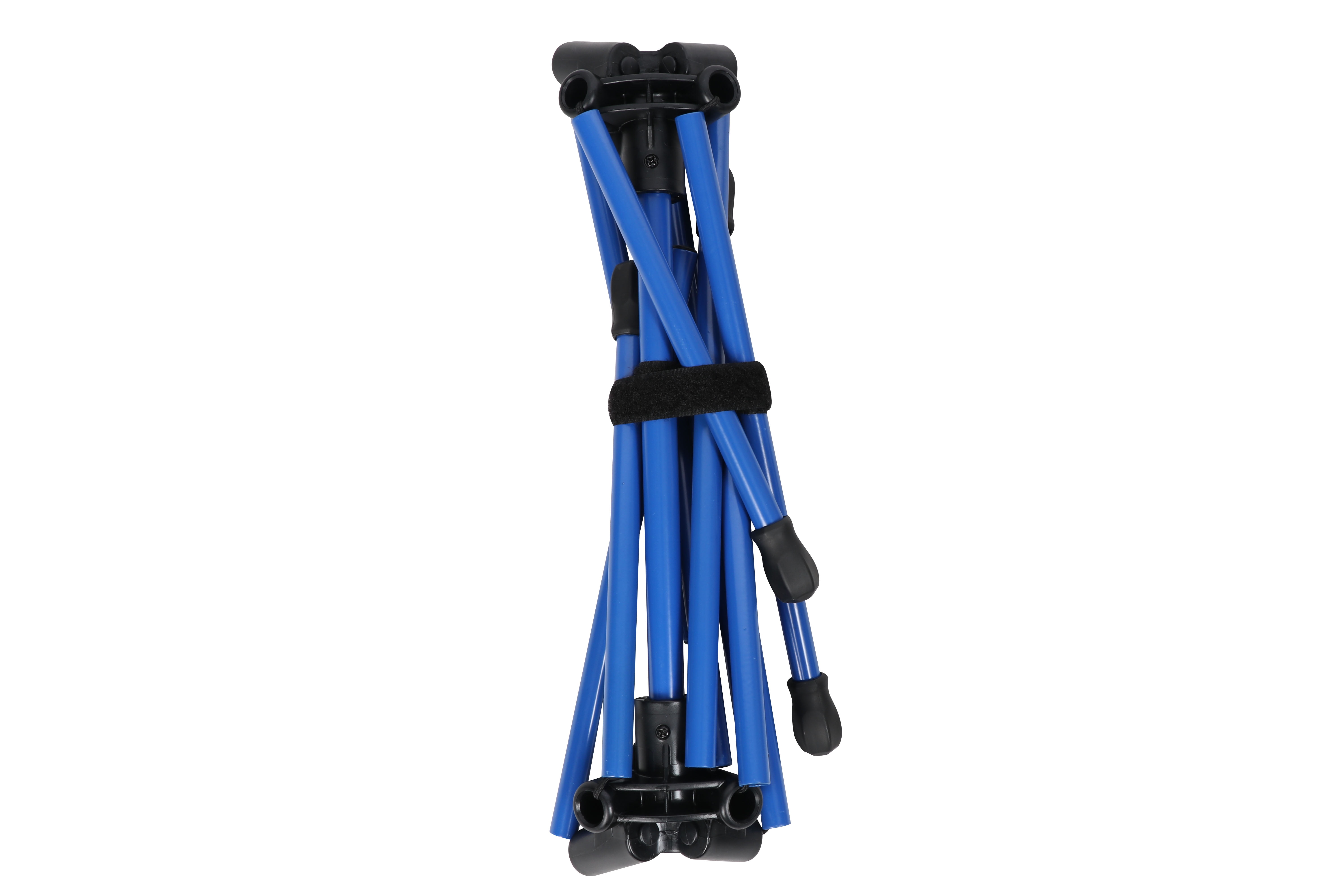 600D polyester fabric with PVC coating Overall size: 20.5″ L x 20.5″ W x 26.6″ H Shock corded steel tube frame with powder coating for weather corrosion resistance Product weight: 3.3 lbs. Carry bag included for easy transport Frame breaks down to compact size and is rolled up in the chair fabric and place directly into the carry bag Folded dimensions in carry bag: 15″ L x 5″ W Black with blue trim and blue frame Model #: FC-321B Adult Black chair