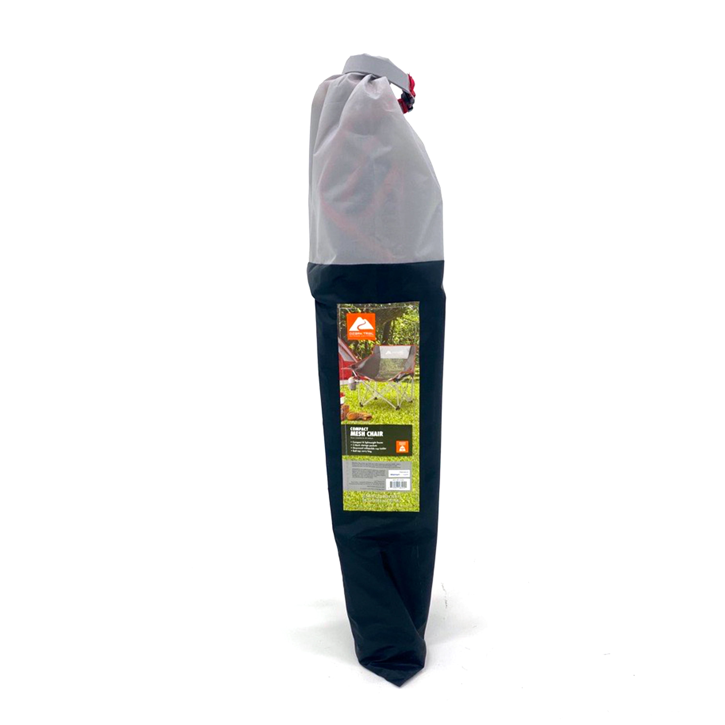 Relax in comfort and style wherever you go with the Ozark Trail Compact Mesh Chair. This convenient foldable camping chair is for easy storage and transportation and includes one cup holder and two mesh pockets. The built-in swivel cup holder is the perfect size for use with various sized drink bottles and cans and the mesh pockets are designed to keep valuables close. This lightweight low-profile compact mesh chair is made from durable polyester fabric and mesh wrapped around a steel frame for long-lasting comfort and convenience. The constructed steel frame will support up to a 300-pound weight capacity. Designed with an angled full mesh back for comfort and added ventilation. An included carrying bag makes it easy to bring this chair with you wherever the adventure leads you. Perfect for camping, ballgames, picnics, or just relaxing in the back yard, this chair is a natural choice. Relax in comfort and style on all your adventures with the Ozark Trail Compact Mesh Chair.