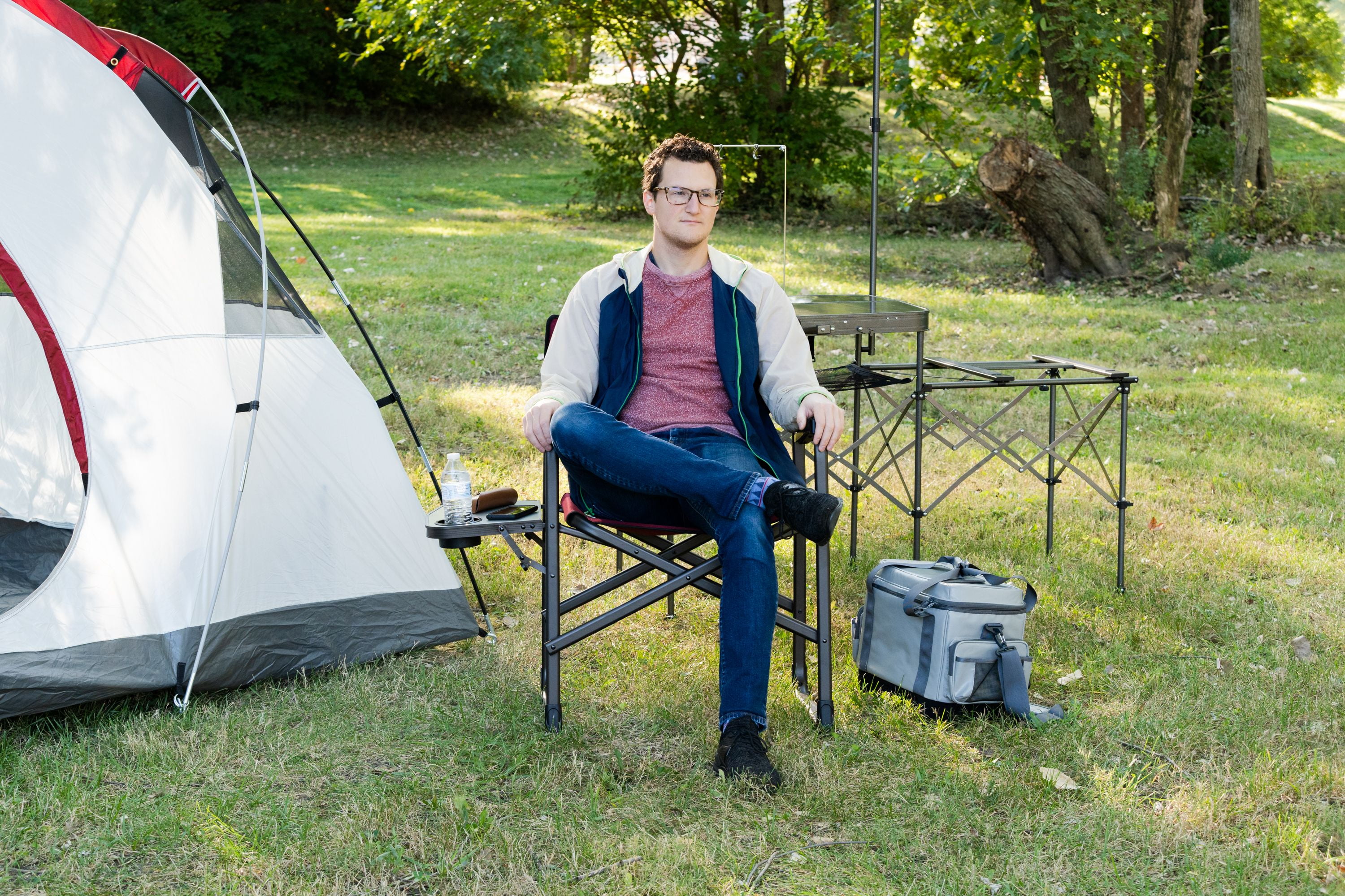 Are you looking to add comfort and style to your next camping trip. If so, check out the Ozark Trail Hazel Creek Lightweight Director’s Chair. Unlike other chairs, this product is made with a lightweight frame that is built for easy transportation and storage. Frame is extremely strong but lightweight made from a metal alloy, which is 36% lighter than aluminum and even 77% lighter than other materials. Under the same weight, its flexibility is 37% greater than aluminum, and 400% greater than titanium alloy. The folding frame design also allows for a quick setup and will support up to 250 pounds. With this chair’s durable, PVC-coated polyester fabric and strong frame, you can count on having a comfortable place to sit year after year. And because we know how important a cold beverage is at the campground, we included a side table with a cup holder to keep drinks and other important items nearby. Whether you’re camping, fishing, at a picnic or just relaxing in your own backyard, you can count on the Ozark Trail Lightweight Director’s Chair. Adult chair, lightweight