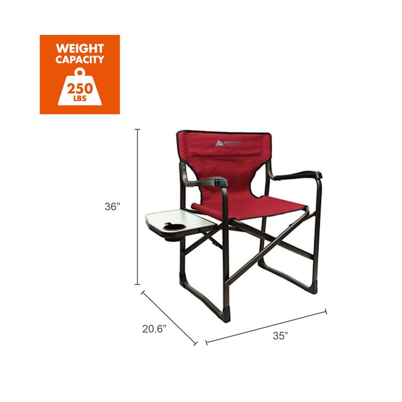 Ozark Trail Director Camping Chair, Red with Side Table, 4lbs Light Weight