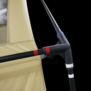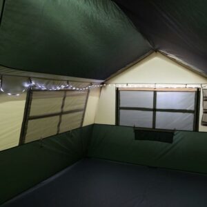 – Two strings of LED lights hang conveniently inside tent (batteries not included)