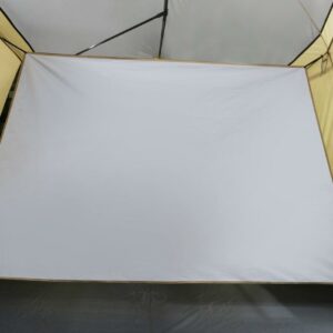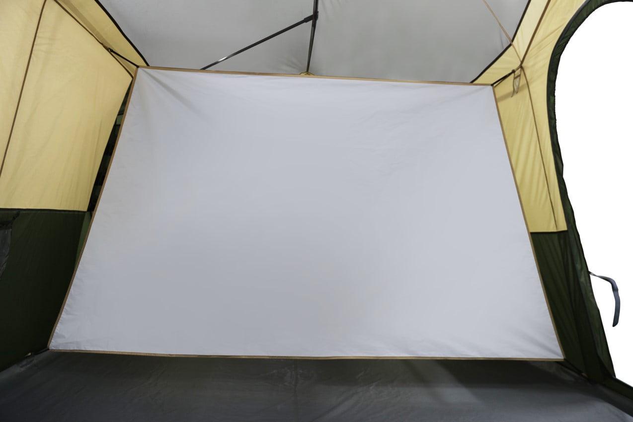 For trips to the wilderness with a large group, you ll be comfortable in the Ozark Trail Hazel Creek 12-Person Cabin Tent. With a traditional all steel cabin design and gable entrance, you can take advantage of its two closets with hanging organizers, plus corner organizers, mesh pockets, and even a tablet pocket for your organizational needs. Two room dividers turn it into a three-room safe-haven, while one divider is made with silver coated fabric and works as a movie screen. You ll have light with the two strings of LED lights hanging inside the tent, while an E-port gives you power for your tech goods, and the mud mat keeps your boots and pack off the muddy ground. Pack it away conveniently in the included rolling storage duffel to make an easy job of moving it around. Green and tan in color. Stay comfortable even in the wilderness with the Ozark trail Hazel Creek 12-Person Cabin Tent.