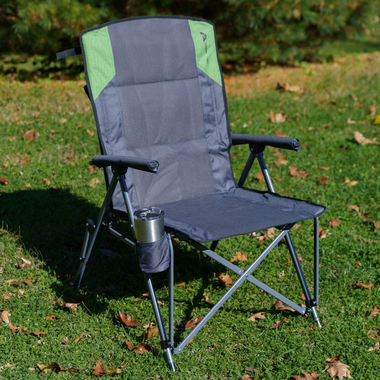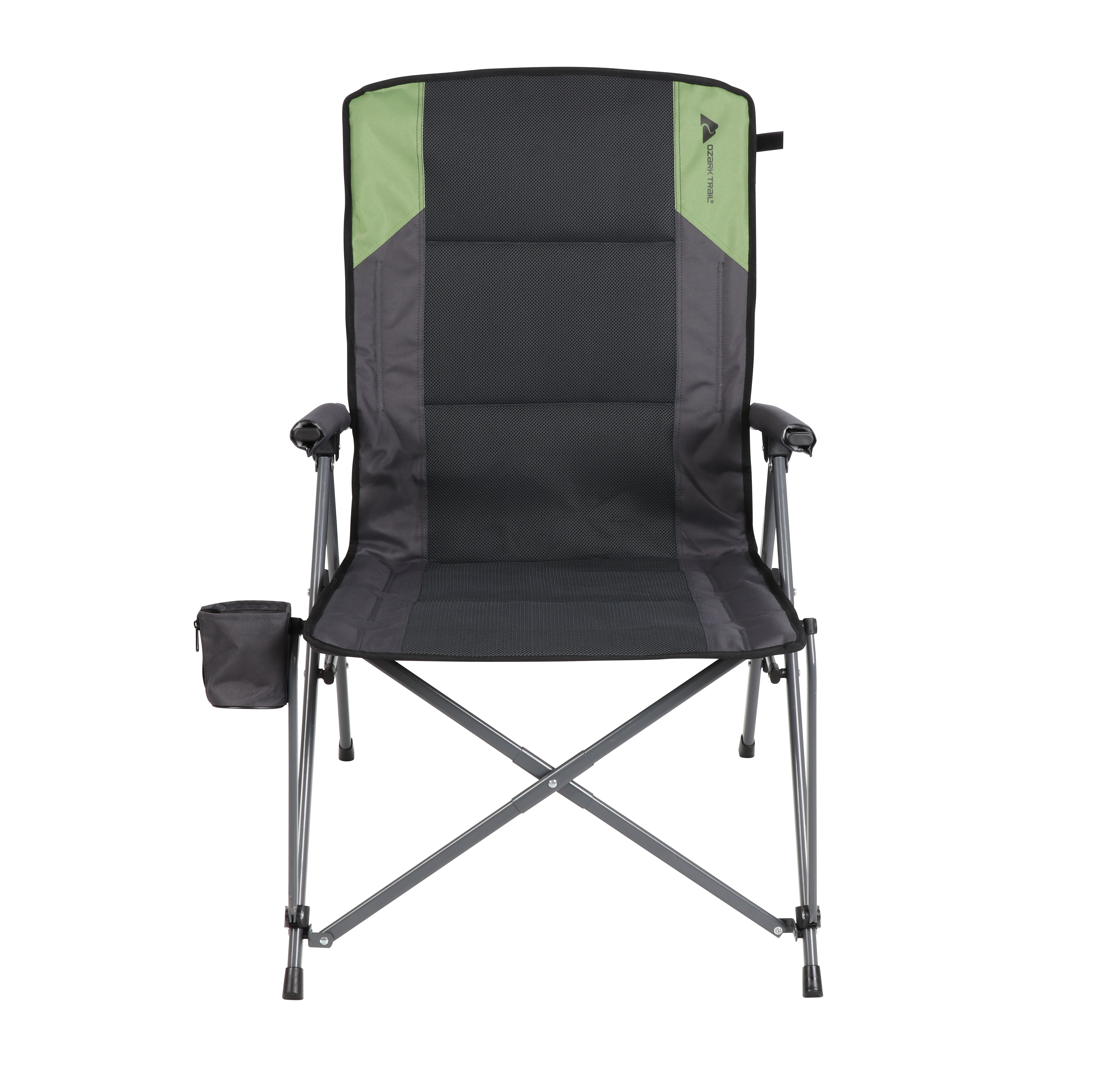 For compact comfort, the Ozark Trail High Back Hard Arm Adult Camp Chair with cup holder might be just what you need. With a high back design, hard arms and a tension fabric seating area, this chair provides a more supportive and comfortable sitting experience. It is also built with a durable powder-coated steel frame and boasts a weight capacity of up to 300 pounds. A cup holder is included to ensure you will always have a beverage nearby. And when it is time to go, this chair folds up compactly and fits in its included carry bag for easy storage and transport. In fact, when folded, it is 25 percent smaller than similar chairs, so you will not have to sacrifice space when heading to the campsite or storing it in the garage. Before heading out on your next outdoor adventure, upgrade your camp seating with the Ozark Trail High Back Chair.