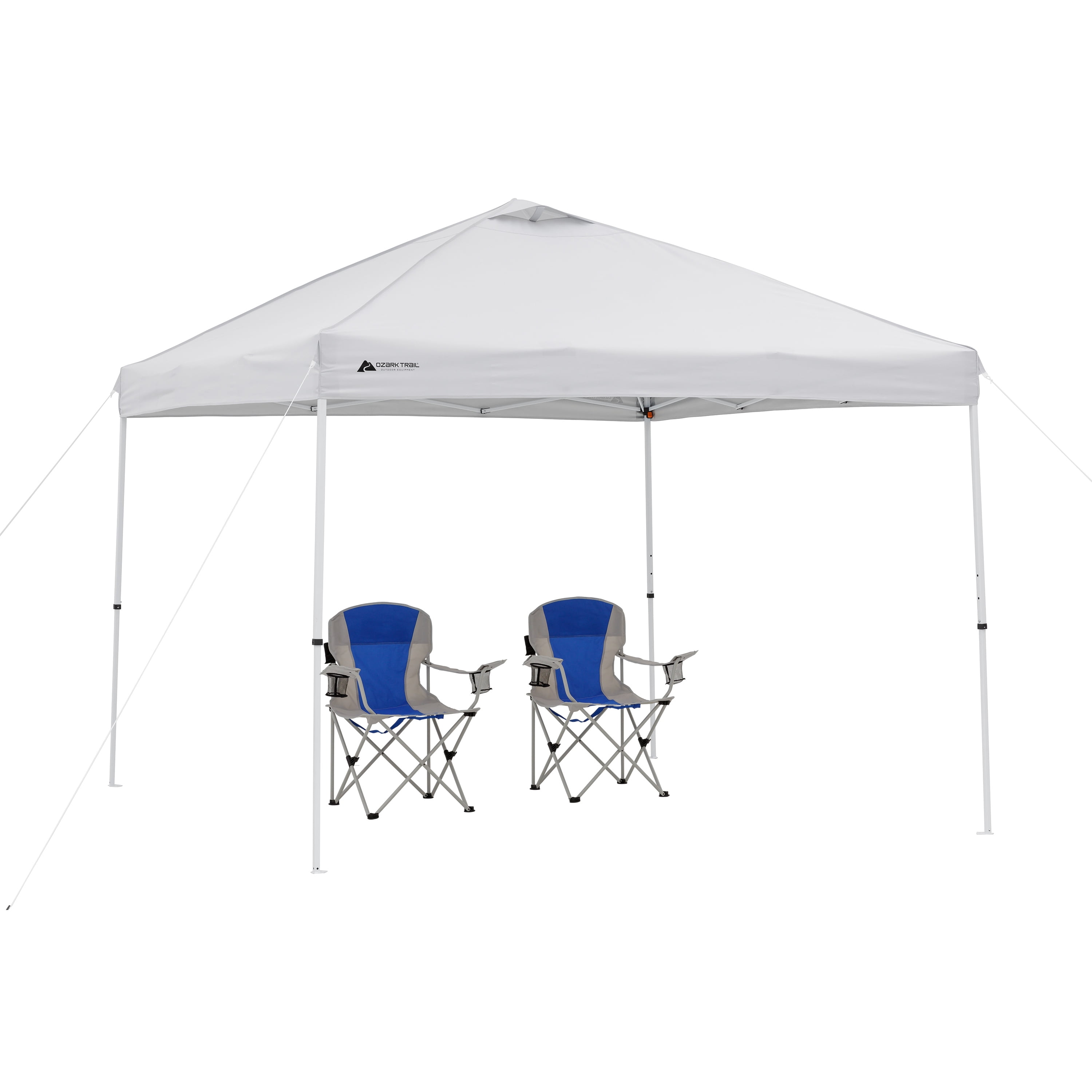 Ozark Trail 10″ x 10″ Instant Canopy: Make your tailgate, campout, or backyard party even more enjoyable Made of a durable polyester construction Provides 100 square feet of cooling shade anywhere Easy push-button system offers safe setup and takedown Features built-in vents on the top for added ventilation Offers 50+ UV protection from the hot sun all day long Includes extendable steel frame, canopy top and telescoping 3-position legs to set to desired height Canopy top has a mesh bag for storing smaller items like sunglasses or a wallet 112″ center height gives you plenty of entertainment space Perfect canopy for your next outdoor adventure