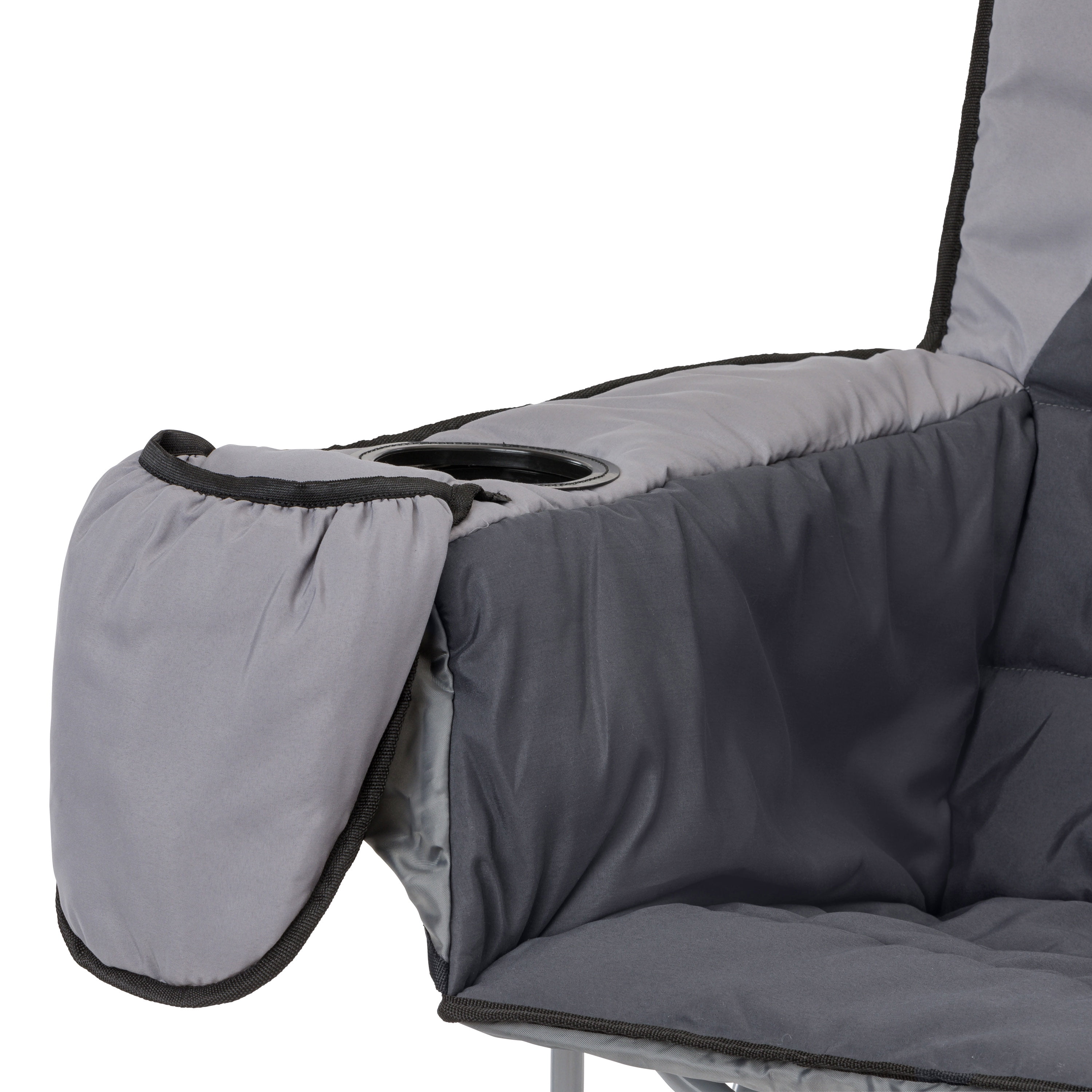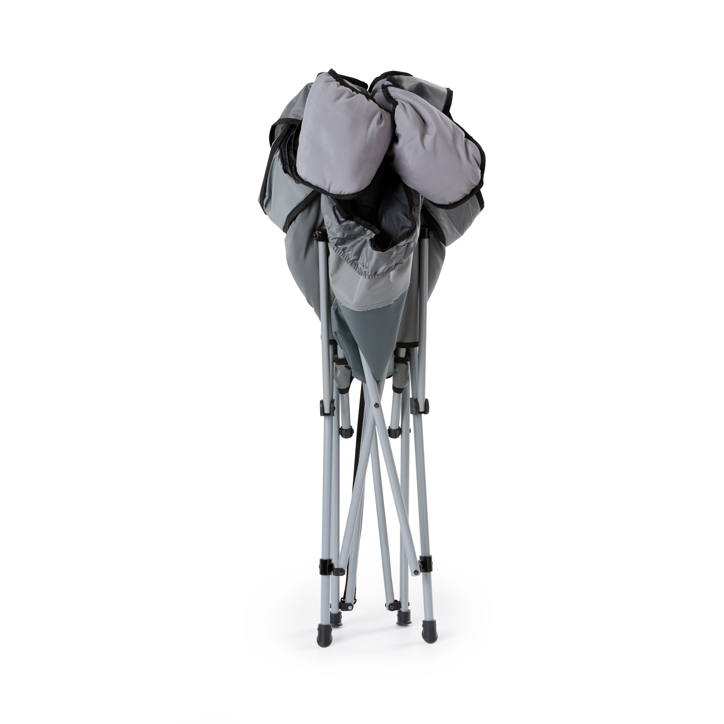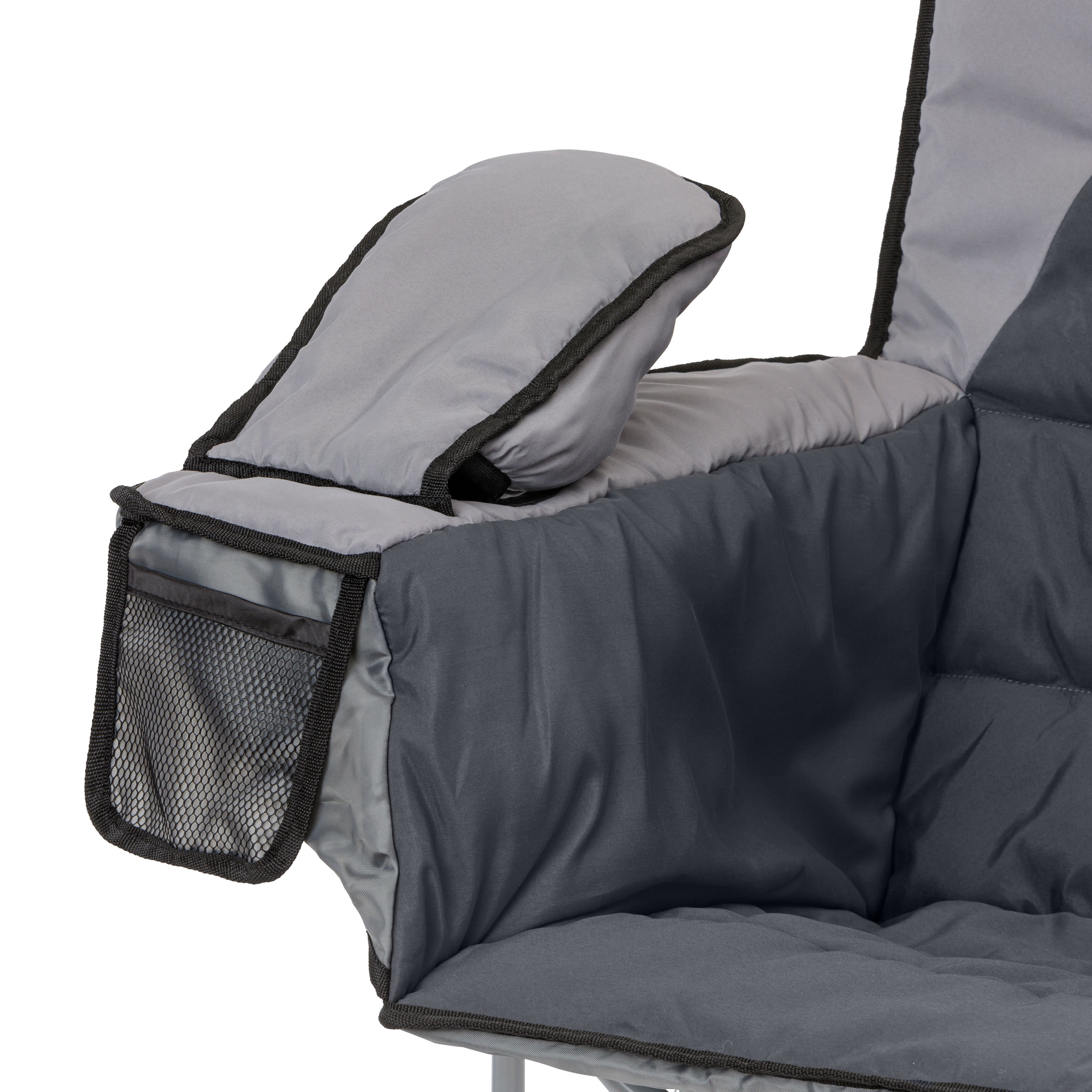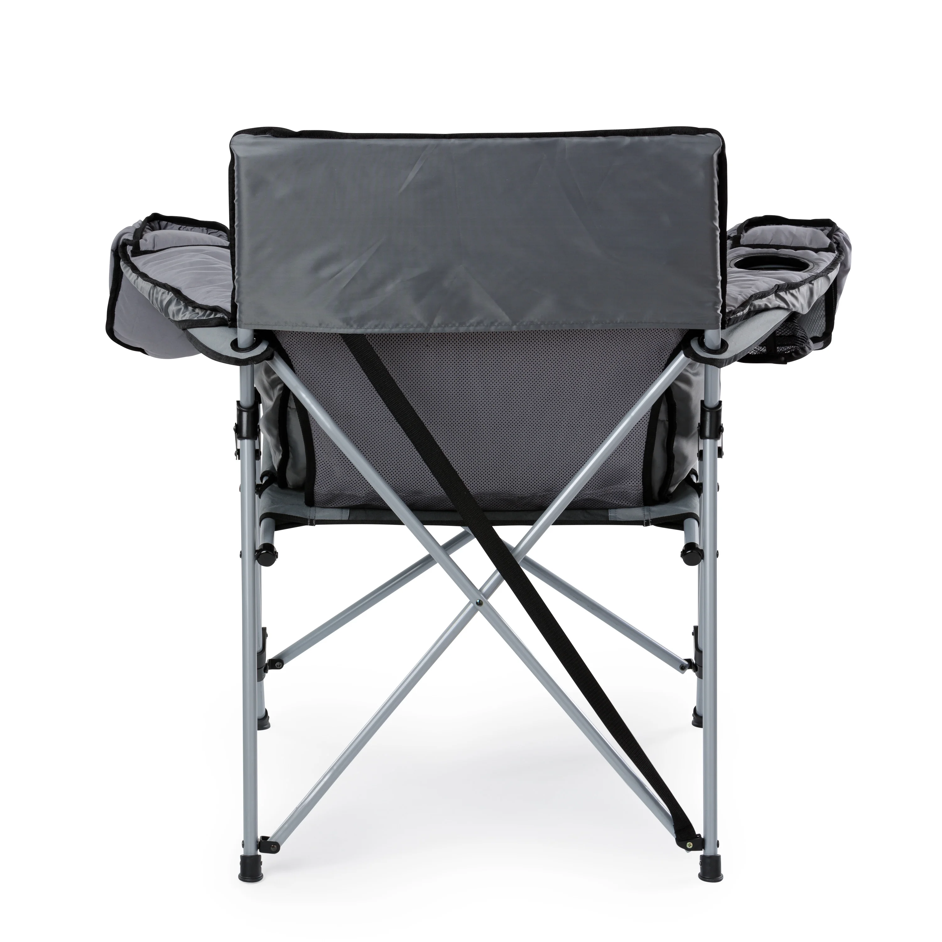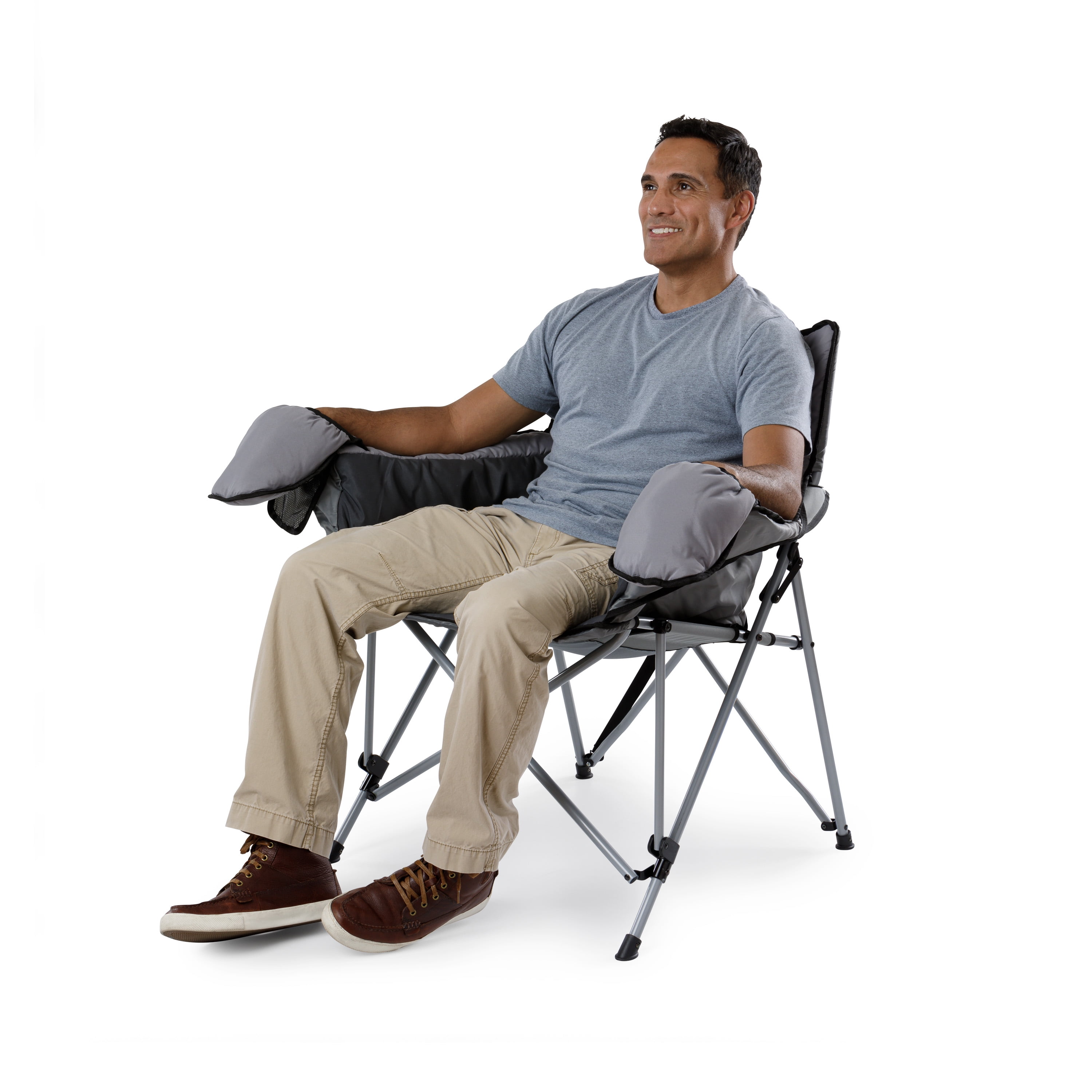 Perfect adult chair for any warm or cold occasions Removable padded cover that is built with hand-warming pockets to help keep your hands warm on chilly mornings at the campsite Mesh storage pocket to hold smaller items like sunglasses, keys, or playing cards Built-in cupholder to hold your favorite drink Breathable mesh back when the padded cover is removed Roll-top carry bag with shoulder strap for quick and easy transportation. Constructed with a durable steel frame Relax in comfort and style on your next outdoor adventure. Weight Capacity: 400 lbs. Dimensions: 35” x 26” x 35” (H) Model #: 30721