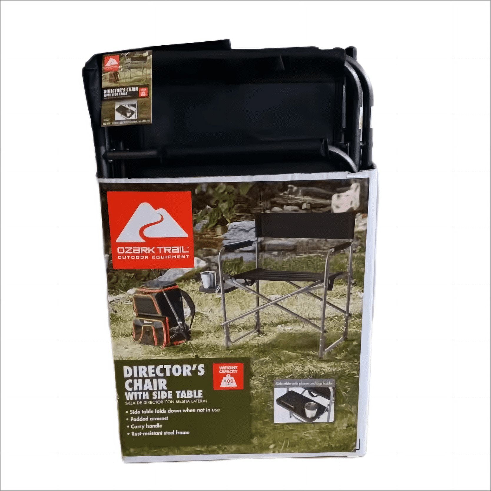Direct yourself into the delightful seat of this Ozark Trail Director’s Chair with Side Table. Comfort and ease of setup make this take anywhere adult chair as convenient as it is stylish. At only about eight pounds, this foldable steel frame chair with a 600D polyester seat keeps you comfortable at the campground or right in your backyard and holds up to 400 pounds. Use the side table to hold your magazine, paper, or drink. And for easy moving, it comes with a carry handle already attached. Relax in comfort and style on all of your adventures with the Ozark Trail Director’s Chair with Side Table. Adventure is where memories are made, whether it’s campouts in the back yard with the kids, Saturdays at the river with friends, or a week in the wilderness alone. Ozark Trail helps you and your family create everyday adventures with gear and accessories built with you in mind. From backpacks to tents, they’re rugged, dependable, and priced to be practical. Because adventure is not a destination, it’s a lifestyle.