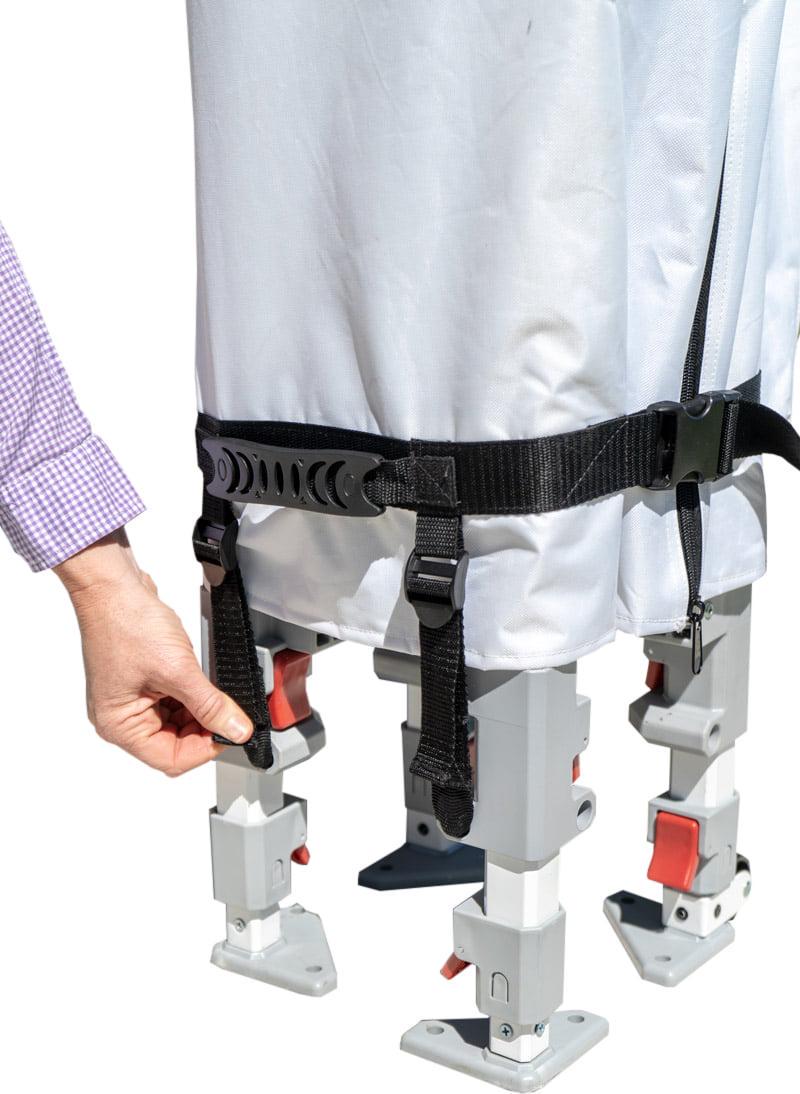 – Heavy white 400D polyester top provides 99% UV protection and is water and fire resistant
