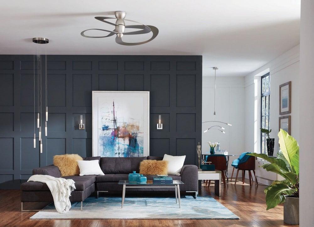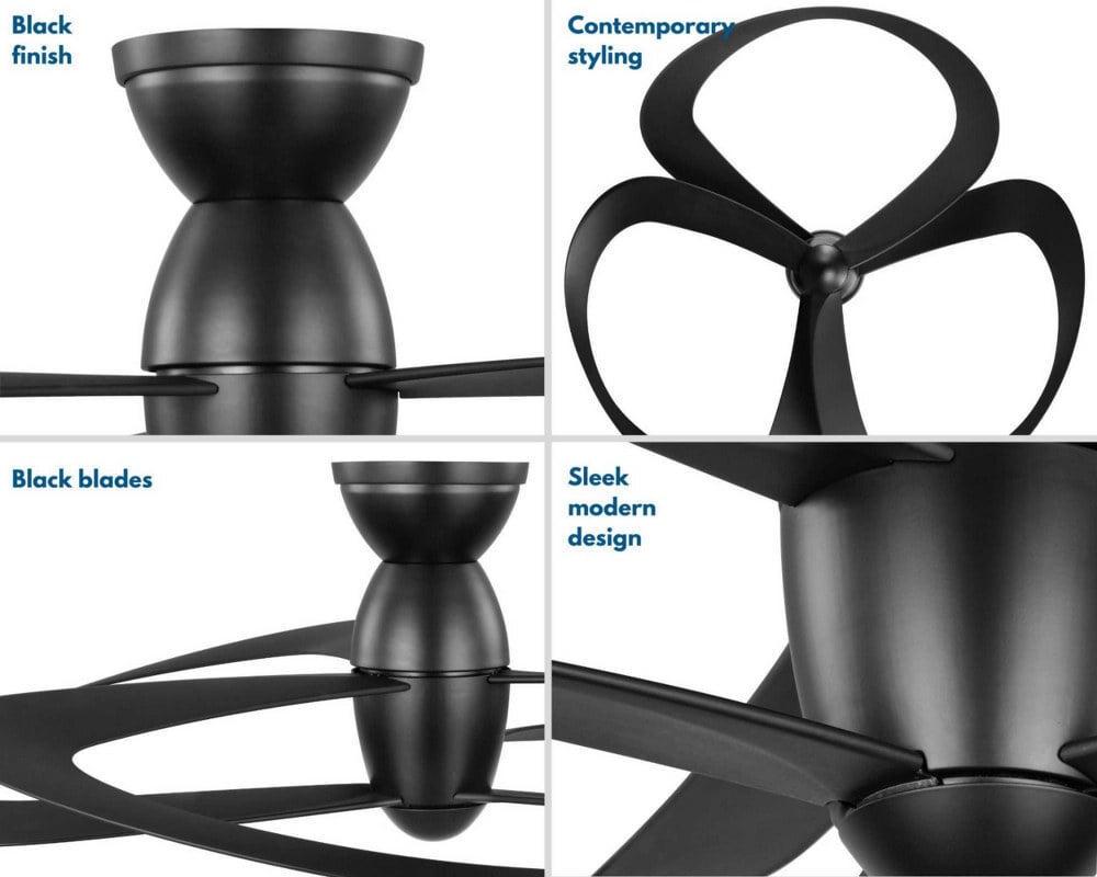 Progress Lighting-P250063-031-Collection: Willacy, Material: Steel, Finish Color: Black, Blade Span: 48″, Blade Color: Black, Number Of Blades: 3, Hanging Method: Stem, Light Kit Type: Not Compatible, Wet Location: Damp Rated, Desc: Create a striking focal point with the Willacy Collection 3-Blade Black 48- Inch DC Motor Contemporary Ceiling Fan. Swirling, ribbon-like blades and a gleaming center hub are coated in a classic matte black finish. The blades are crafted from a strong, all-weathered ABS material to prevent warping. Canopy Included: Yes / Canopy Diameter: 7.5 . ,-Willacy – 48 Inch 3 Blade Ceiling Fan-Black Finish