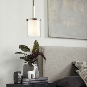 Sleek lines and the union of Antique Bronze and faux wood accents enhance the calming demeanor of the Mast one-light mini-pendant. A fitting choice for shining light onto a countertop or over a dining table or kitchen island in coastal and modern farmhouse interiors.