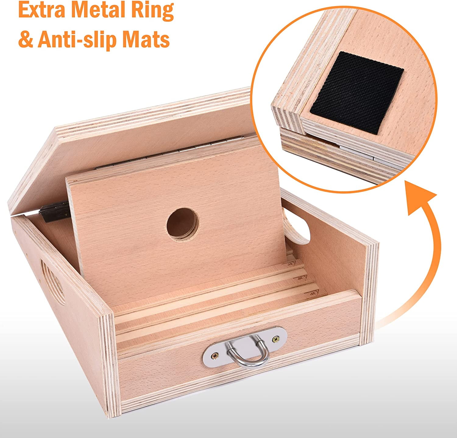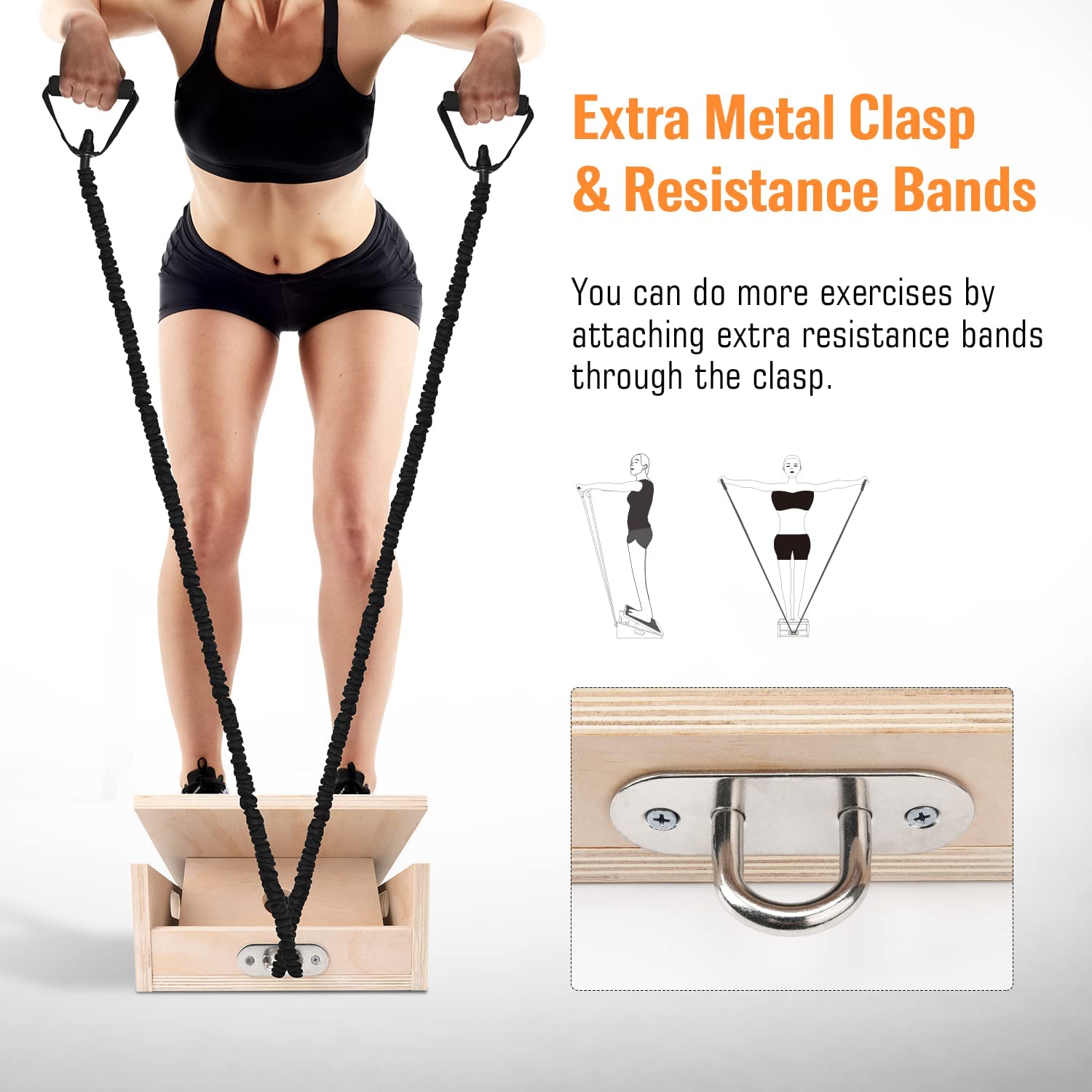 Metal Ring Design The metal ring of this Pacearth wood Calf Stretcher Slant Board fixed in front of the base makes it easier to use the included resistance band or other assistant tools. Protective Sleeve The protective sleeve wrapping on the resistance band prevents the band from rupturing and extends its service life. Extra Handles Extra side handles make the board easy to carry.