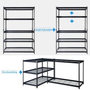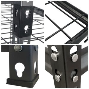 It is made of heavy-duty steel and built for strength and durability. This heavy-duty steel shelving unit has five shelves that provide efficient storage space. It can hold various items, large and small, and has a weight capacity of up to 600 lbs per tier when evenly distributed. The shelves of this five-tier shelving unit can be adjusted every 1-1/2″ to allow for extra space as needed. The flexible design can be assembled vertically for traditional shelf space or horizontally for a workbench style piece. It measures 24″L x 48″W x 72″H. The Pachira Storage Rack 5-Shelf Steel Shelving Unit is available in a black finish that will last for a long time.