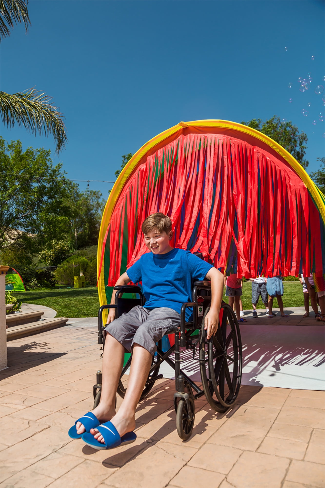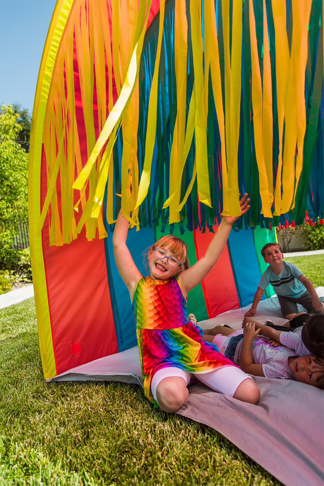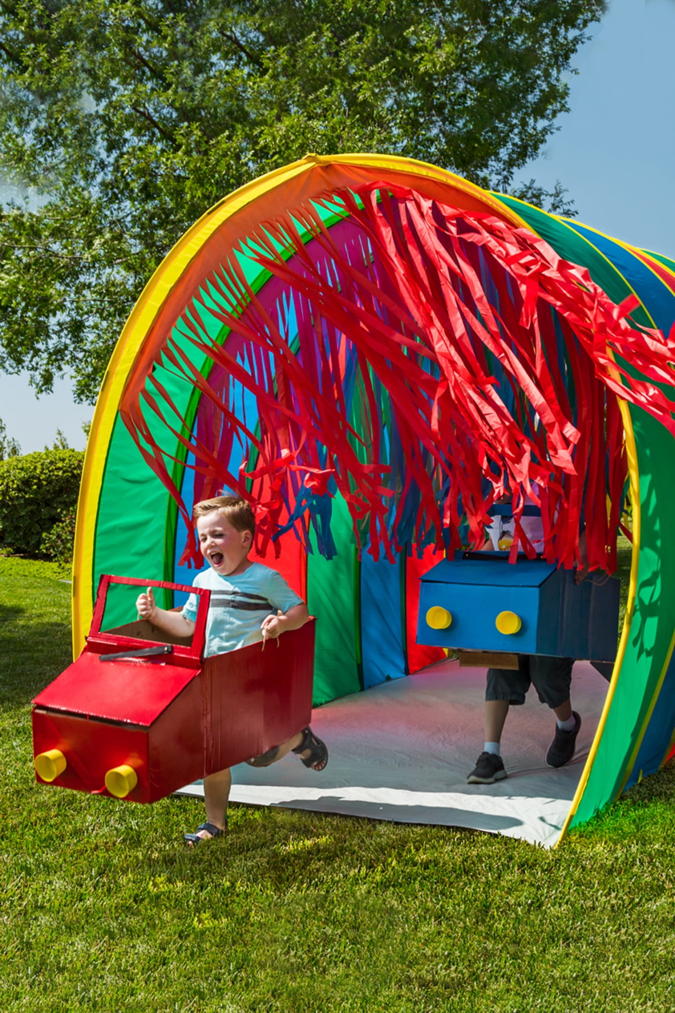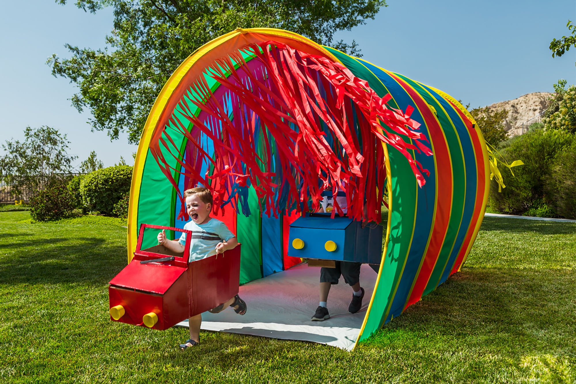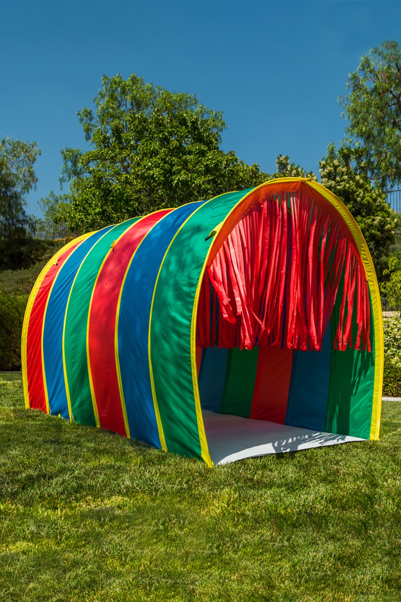 Run, don’t walk through this awesome tent! Our Giant Sensory 9.5 Ft Walk-Thru Tunnel is perfect for cooperative play, allowing plenty of room to run, walk or use your wheelchair through. The large interior and built-in streamers will allow for endless imaginative play while helping to develop sensory skills and muscle strength. It’s made of high-quality polyester and the super stitched seams ensure many years of indoor or outdoor playtime to come! Ideal for child ages 2 -5 years girls or boys but can accommodate adult also.