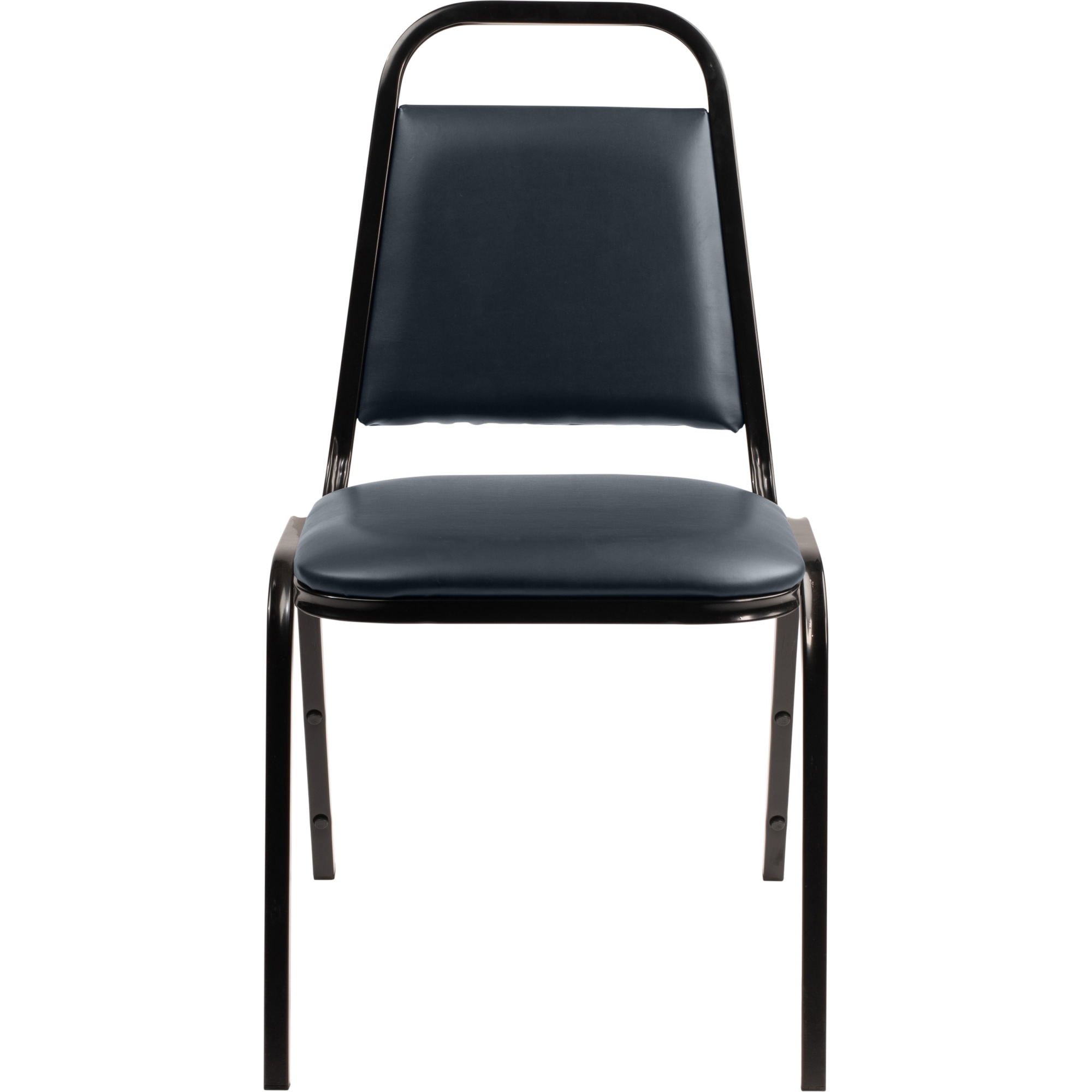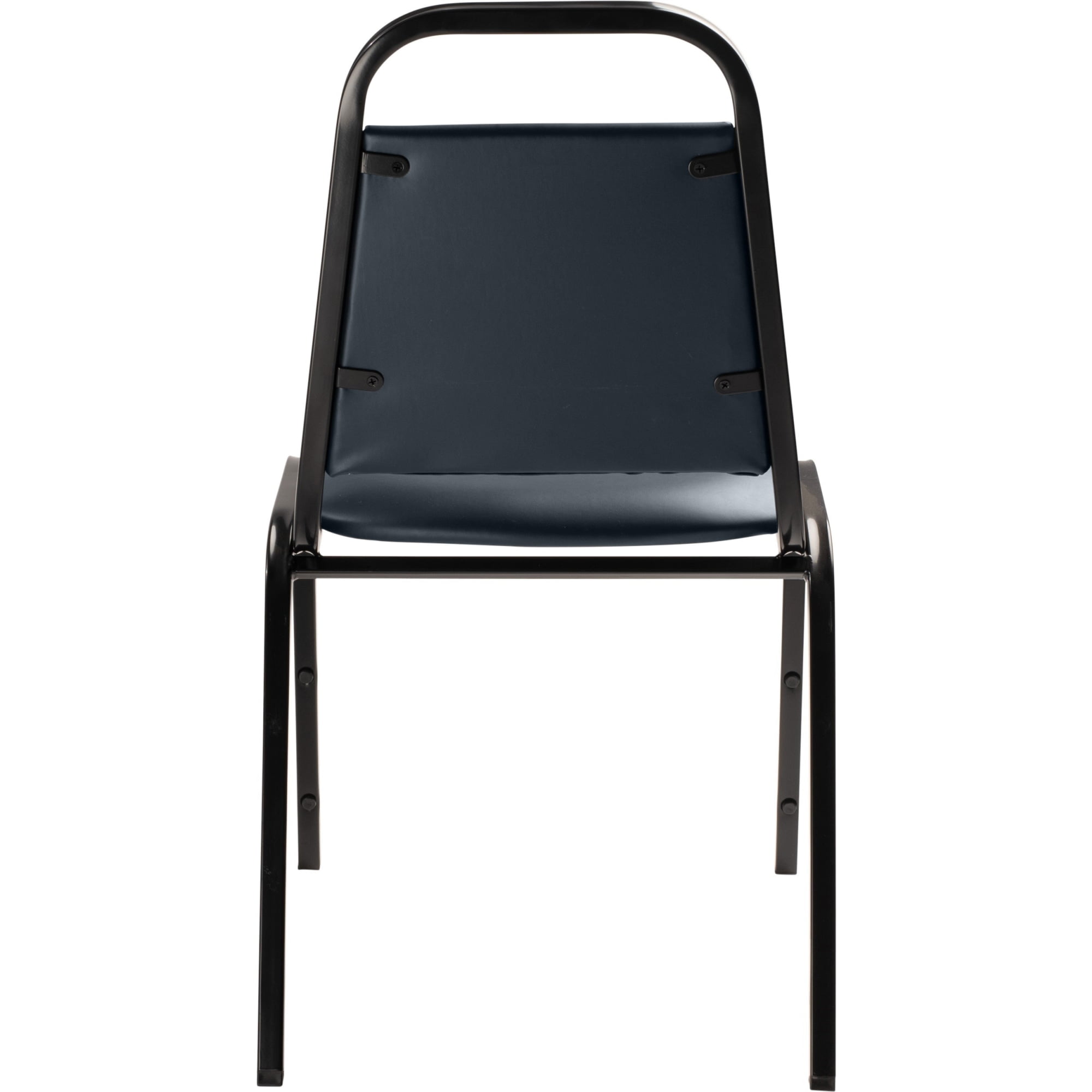 Sturdy .75 inch Square Frame 19-Gauge Steel Tubing With Non-Marring Plastic Glides Seat Is Cushioned With 1.5 inches Of High-Density Grade A Foam Features Midnight Blue Thick .80Mm Vinyl Tapered Back Has Built-In Handhold Eight Plastic Stack Bumpers Protect The Powder-Coated Frame Finish 300 lb Weight Capacity 10 Year Warranty