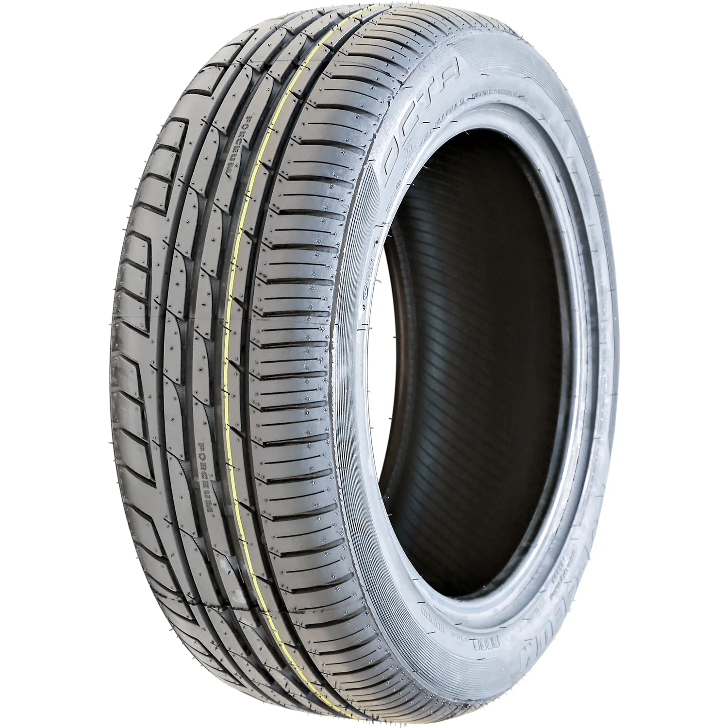 Forceum Octa OVERVIEW The Forceum Octa is a performance and high performance, all season tire manufactured for passenger vehicles and SUVs. The tire promotes exceptional all season traction. The asymmetric tread features a dual zone design. The tire’s outer area increases the dry weather performance, while the inner area boosts the wet and light winter weather road gripping ability. The dry zone’s tread blocks firmly grip the road surface, while the wet zone sport circumferential grooves that prevent hydroplaning by dispersing water from beneath the tire’s footprint. The better hydroplaning resistance and excellent all weather road gripping ability ensure a safer year round driving experience. The model’s controllability and maneuvering are first-rate. The asymmetric tread pattern features three center ribs that maintain constant road contact. The tread design firmly grips the road in all conditions and allows the tire to closely follow the surface. This enhances the steering responsiveness and accuracy, while also stabilizing the tire against the driving pressure affecting it. The three center ribs also manage to shorten the braking distance. They create friction at the moment of braking, enhancing the braking ability and power. The outer shoulder tread block sequence increases the number of biting edges that ensure a safer and more controlled cornering and maneuvering capability. The Octa offers an enjoyable drive. The tread design decreases the road noise heard while the tires are in motion thanks to the variable pitch sequence. It negates the road noise heard in the vehicle’s cabin during the drive by generating a sound frequency that cancels the sound waves before they reach the cabin. The result is a quiet and comfortable driving experience. Manufacturers recommend changing tires every 10 years. As long as tires are properly stored before they are sold, the year of their manufacture will not shorten their service life.