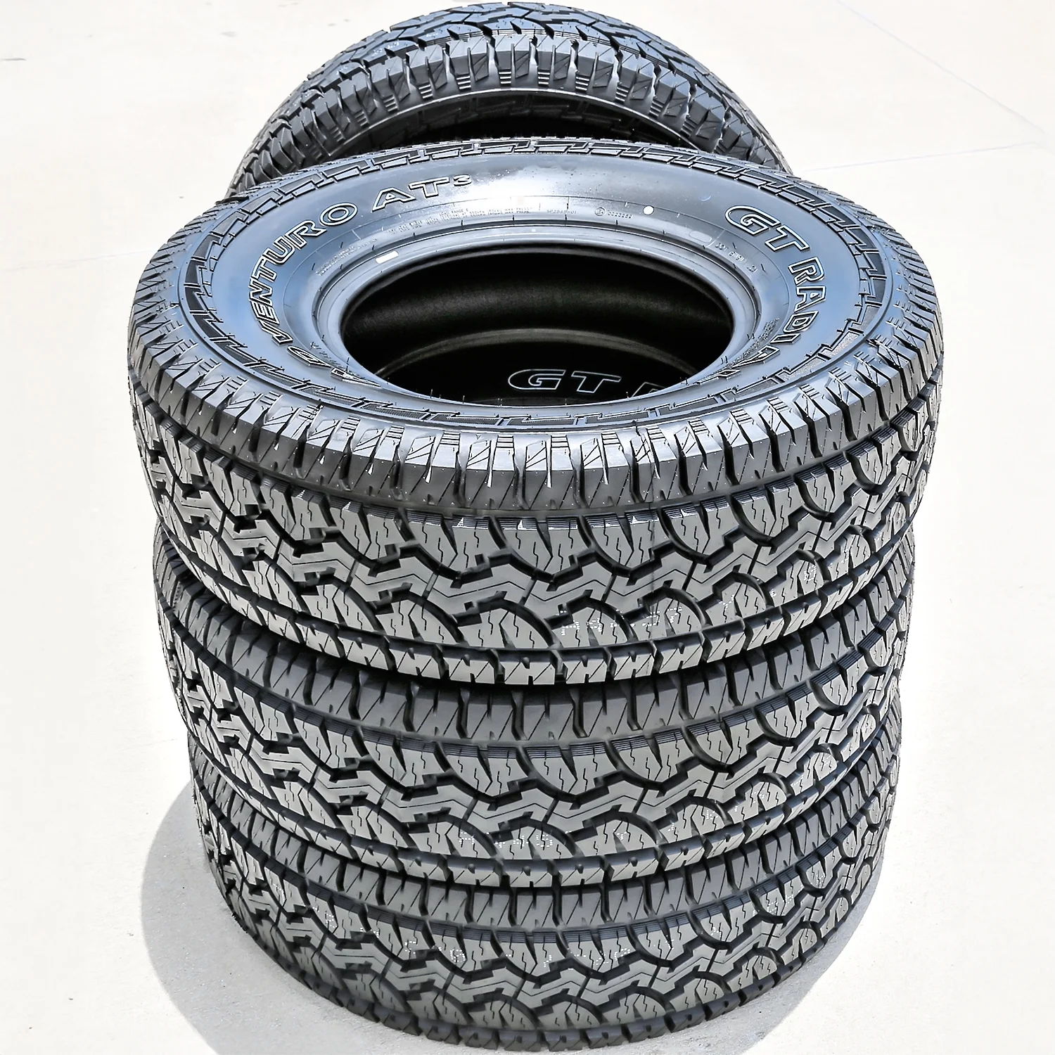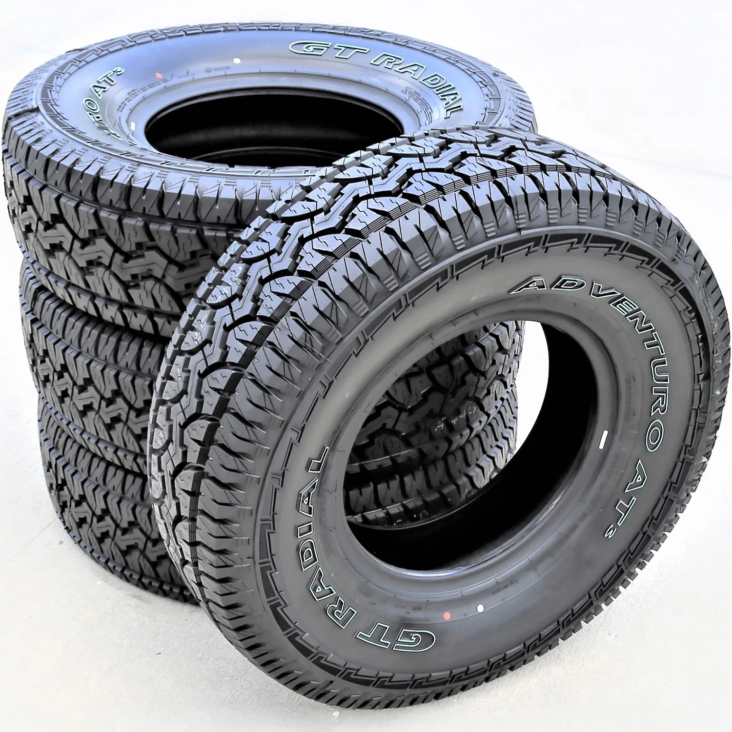 GT Radial Adventuro AT3 OVERVIEW The GT Radial Adventuro AT3 is an all season, all terrain tire manufactured for SUV and light truck vehicles. GT Radial offers a 50,000 mile treadwear warranty with SUV sizes of this model. This all season tire has excellent all weather traction, even in light snow. Its road grip was enhanced by the improved tire compound, which grips the road well in all weather conditions. The tire’s tread grooves are designed in a way that they channel water from beneath the footprint of the tire, assisting in resisting hydroplaning. The tire also has excellent grip on all surface conditions and continues to perform well, even on loose or soft surfaces. Its high speed and highway stability are due to the special tread design. This same design helps eject stones and rocks from between the tread blocks as the 3D grooves clean themselves while also providing excellent off-road performance. The tire’s sidewall offers protection for the rim and guards it from accidental curb damage. This, along with the slower wear of the tread, results in a longer lasting tire. The Adventuro AT3’s five-pitch technology helps reduce the road noise heard in the cabin of the vehicle during on-road driving, by channeling the soundwaves through the tread pattern. This offers a quiet and comfortable driving experience. Not all tire sizes are suitable for all vehicle types. Please refer to the item specifications for accurate information about vehicle type fitment for this particular size. Manufacturers recommend changing tires every 10 years. As long as tires are properly stored before they are sold, the year of their manufacture will not shorten their service life.