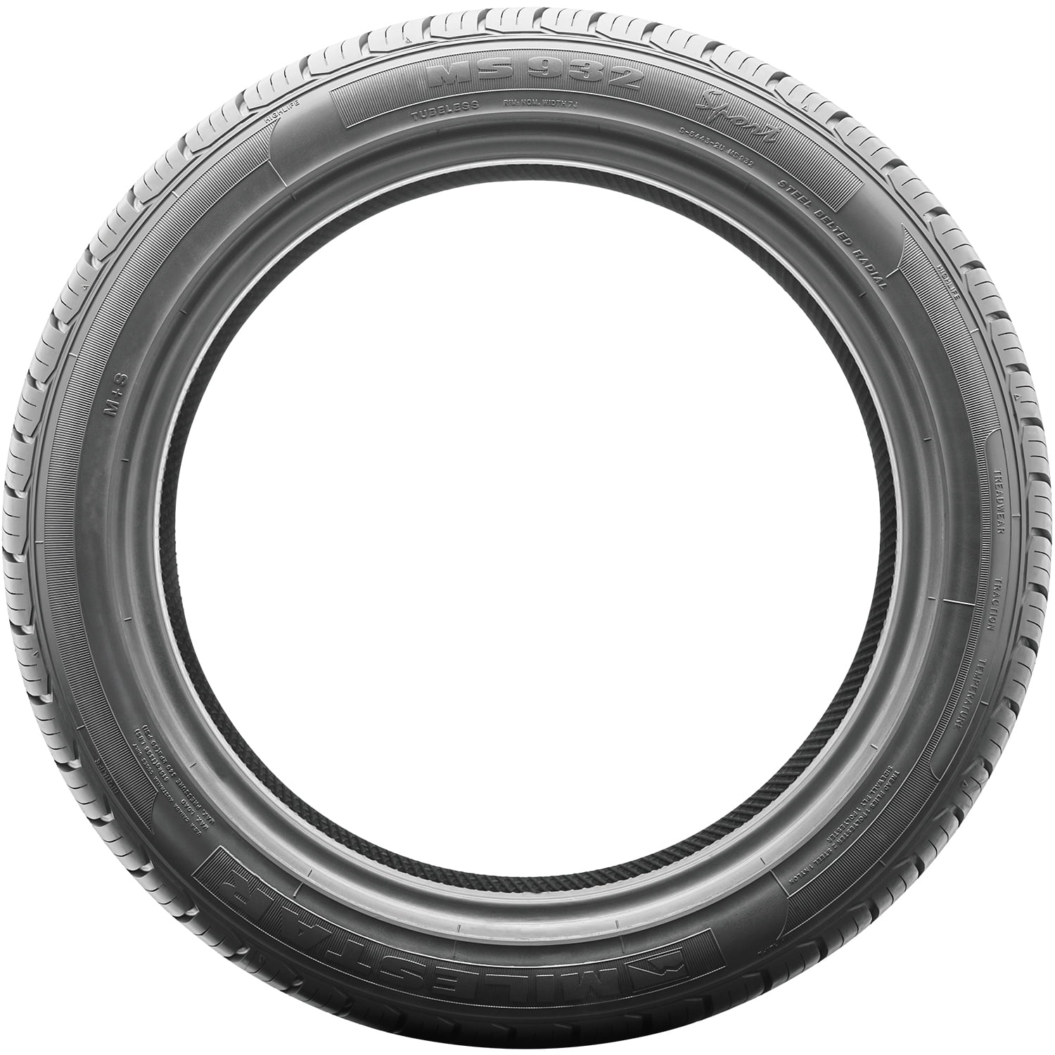 Milestar MS932 Sport OVERVIEW The Milestar MS932 Sport is a performance and high performance, all season tire manufactured for passenger vehicles and SUVs. This model has some touring sizes too. Milestar offers a 50,000 mile treadwear warranty with W-rated sizes, and a 60,000 treadwear warranty with H, T and V-rated tire sizes. The tire promotes first-rate all weather traction. The optimized tread design’s lateral siping detail enhances the all weather road gripping ability, while also ensuring a safer driving experience. They maintain a firm grip on the road surface and allow the driver to confidently control the vehicle year round. The wide circumferential grooves effectively resist hydroplaning by actively evacuating water and slush from below the tire’s footprint. The tread pattern also manages to boost the model’s handling and maneuvering. The tread’s shoulder tread blocks upgrade the cornering and maneuvering significantly. They provide additional biting edges in all weather conditions in such situations to ensure a safer cornering and maneuvering ability. The wider continuous ribs improve the steering responsiveness and driving stability greatly. The steering becomes quick and precise to the driver’s instructions, while the tire is stabilized against the driving pressure affecting it. The better cornering ability, steering and driving stability ensure a more secure driving experience. The optimized tread pattern also increases the tire’s usability. The tread design evenly distributes the driving pressure across the tread area. This equal spreading of the forces of acceleration, cornering and braking improves the tread life and the length of the tire’s usability by avoiding irregular wear formations on the tire’s surface. The longer lasting even tread life, making the tire more cost efficient. The MS932 Sport also manages to lower the road noise heard while the tires are in motion. The optimized tread design prevents irregular wear formations, which lower the possibility of road noise generating. Furthermore, the tread design eliminates the road noise by channeling the soundwaves away from the tread elements. The result is a quiet and comfortable driving experience. Manufacturers recommend changing tires every 10 years. As long as tires are properly stored before they are sold, the year of their manufacture will not shorten their service life.