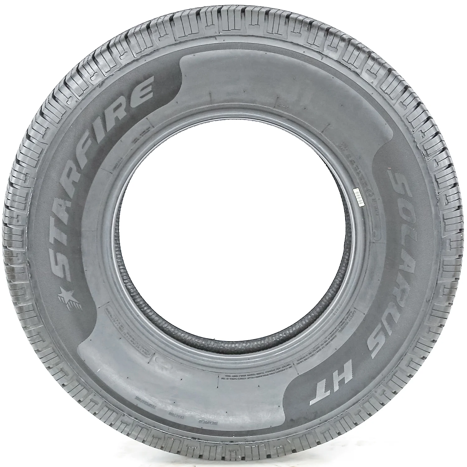 Starfire Solarus HT OVERVIEW The Starfire Solarus HT is a highway terrain, all season tire manufactured for SUVs and light trucks. Starfire offers a 50,000 mile treadwear warranty. The tire upgrades the all weather performance. The detailed tread design and the all season compound improve the dry, wet and winter traction throughout the drive. The high-density siping placement along the tread area increases the grip on the road surface, while the compound keeps the rubber flexibility in different temperatures. The tire’s circumferential grooves prevent hydroplaning by dispersing water and slush from below the footprint. This ensures a safer year round driving safety. The model utilizes the tread design and the durable compound to improve the tread life. The symmetric ribbed tread design enables the tire to evenly distribute the driving pressure. The equally spread out forces of acceleration, cornering and braking avoids irregular wear formations across the tread area. The stronger compound keeps the rubber flexibility reduces the tread wear rate. In this manner, the tire manages to greatly increase the usability and service life. The tread design upgrades the controllability. The symmetric ribbed tread design enhances the steering responsiveness and the driving stability. The steering becomes faster and more precise in its response to the driver’s commands, while the structure is secured against the driving pressure affecting the model. The tread design’s shoulder block placement, with the siping placement, manages to enhance the cornering capability. These tread elements heighten the number biting edges which upgrades the maneuvering capability. The Solarus HT promotes a comfortable drive. The optimal airflow between the grooves reduces the road and tread pattern noise heard in the vehicle’s cabin. The airflow is narrowed which channels the airwaves through the footprint, without allowing their contact with the tread elements. In this manner, the tire does not allow the formation of soundwaves, which greatly reduces the road and tread pattern noise heard by the passengers. As a result, the tire ensures a quiet and enjoyable driving experience. Not all tire sizes are suitable for all vehicle types. Please refer to the item specifications for accurate information about vehicle type fitment for this particular size. Manufacturers recommend changing tires every 10 years. As long as tires are properly stored before they are sold, the year of their manufacture will not shorten their service life.