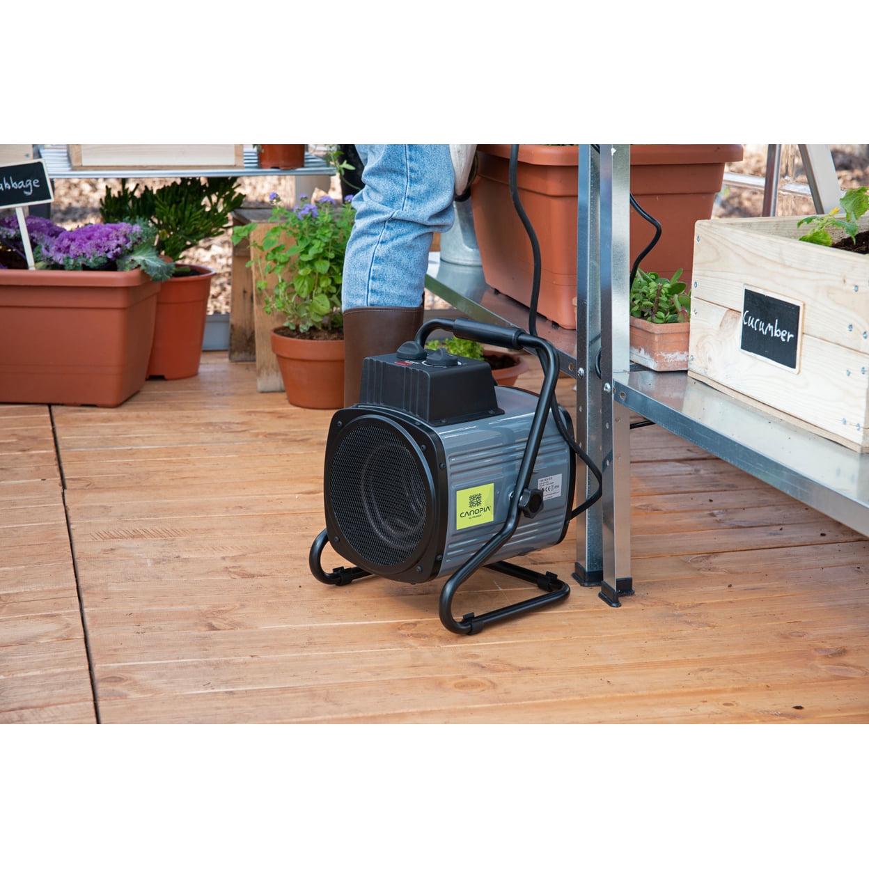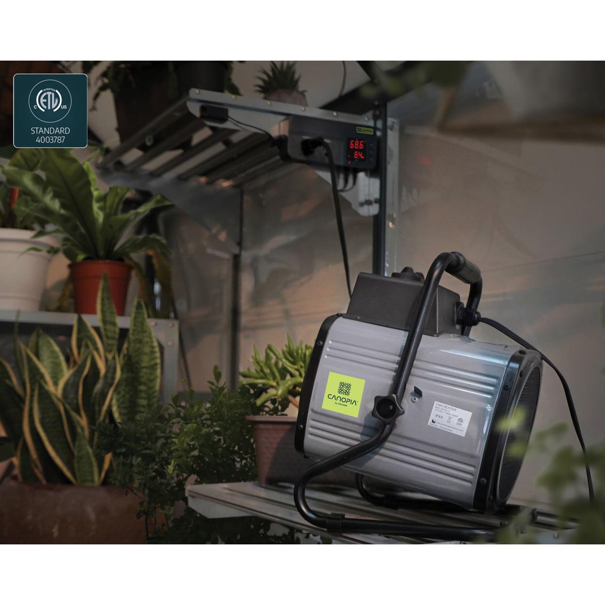 The Palram – Canopia 1500-W Combo Plant Heater and Greenhouse Fan with digital thermostat and humidity controller allows you to conveniently grow year-round in your Palram – Canopia greenhouse and maintain optimal greenhouse heat and humidity levels with confidence. It offers the best air output and climate control available in its group, with a humidity regulator built into the controller and IPX4 certified design for splash resistance to ensure many years of accurate and constant climatic control. An excellent hobby greenhouse heater for year round growing. Heater provides 5500 BTU s and heats up to 150 sq. ft.