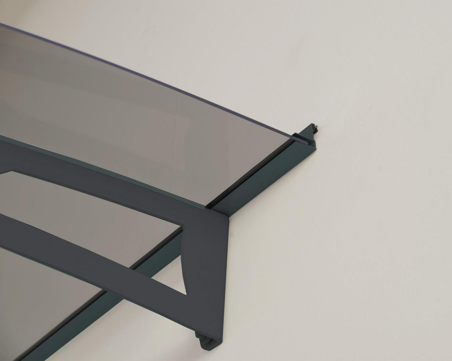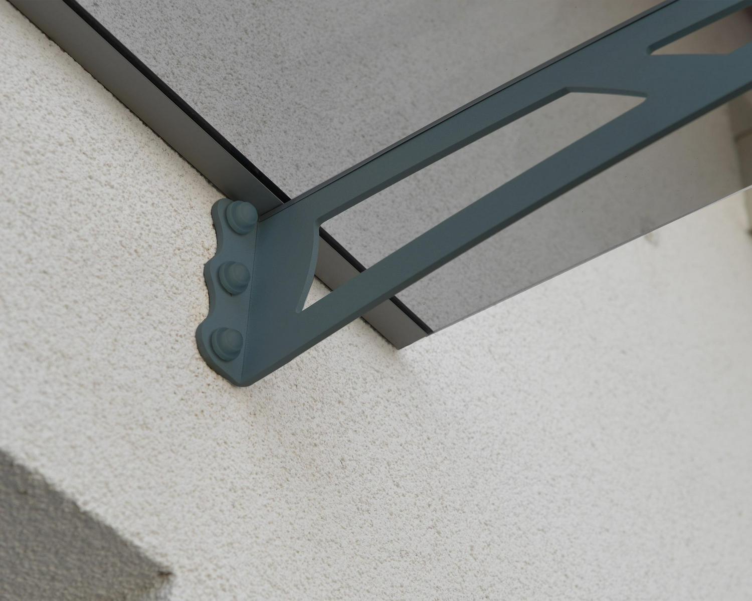 The strong, steel support arms and anodized aluminum front and back trims of the Aquila 1500 are sleek and stylish. Modern, high end materials are neutral enough to match any home décor. The Aquila doesn t require any special tools for setup and the smart and fast locking system will have your door cover up in no time. Keep your home entrance dry and protected from the elements in every season. The gray 100% UV protected 4mm acrylic panel allows light through but filters UV rays that can make your door fade and peel. An integrated front gutter directs rainwater off to the sides. When mounting the awning on lap siding or anchoring to wall studs, an Aquila 1500 siding kit, (sold separately), is recommended.