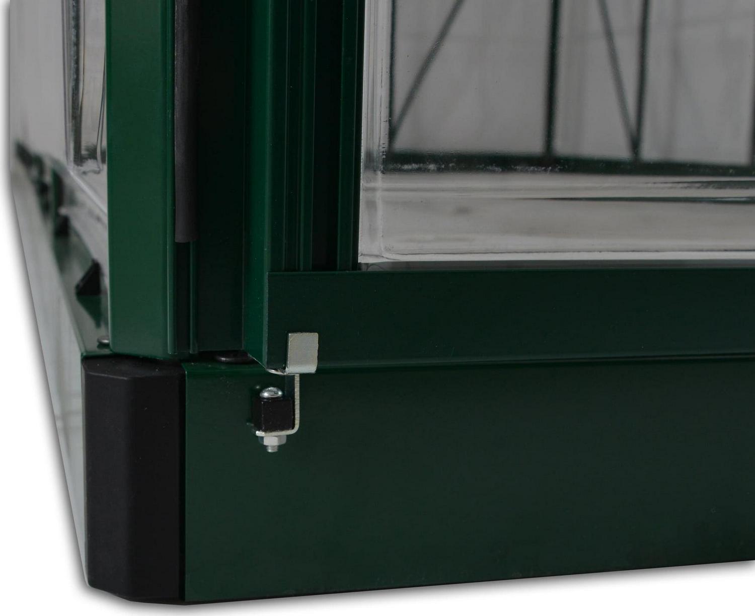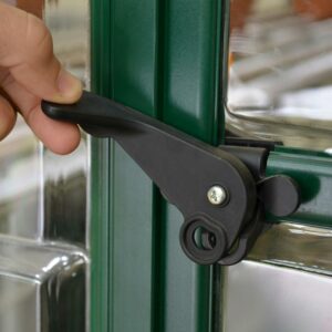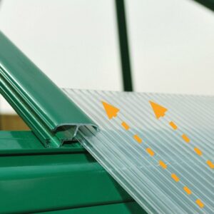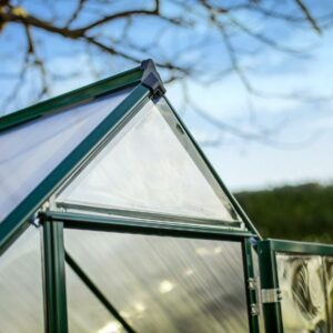 – Virtually unbreakable 4 mm twin-wall polycarbonate roof panels block up to 99.9% of UV rays and diffuse sun light eliminating the risk of plant burn