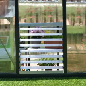 The Palram – Canopia Side Louver Window is designed to improve the air circulation and help control the temperature in your Greenhouse. The shutters are controlled manually for variable airflow to help aid in cooling on warmer days. When paired with the roof vent, the louver window can provide improved air circulation. Additionally the Palram – Canopia Side Louver Window can be fitted with the Automatic Louver Window Opener to provide the ideal airflow into the greenhouse. Compatible with Palram – Canopia Hybrid, Mythos, Harmony, Snap & Grow, Balance, Octave, Essence, Chalet, Americana, Oasis, Glory and Bella Greenhouses.