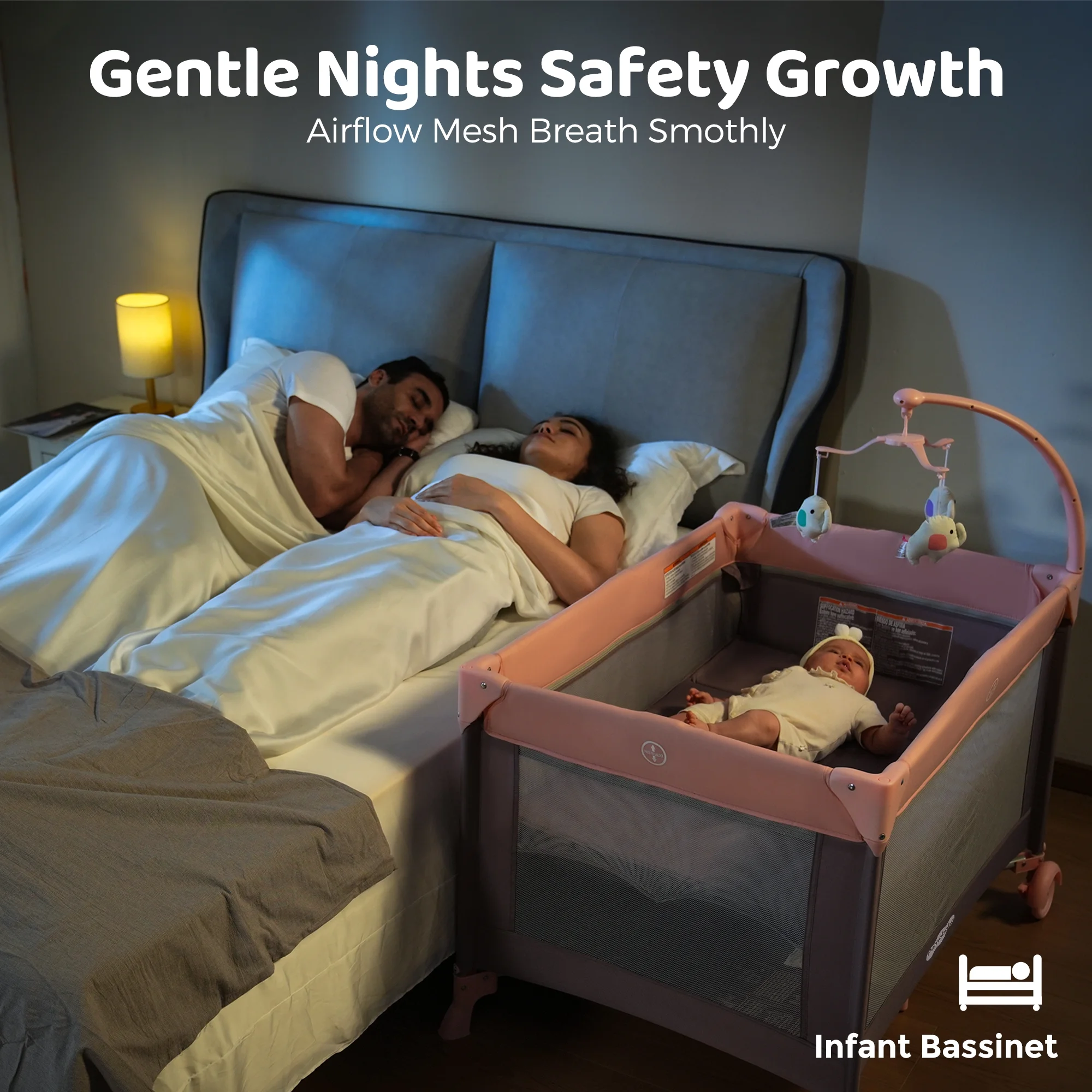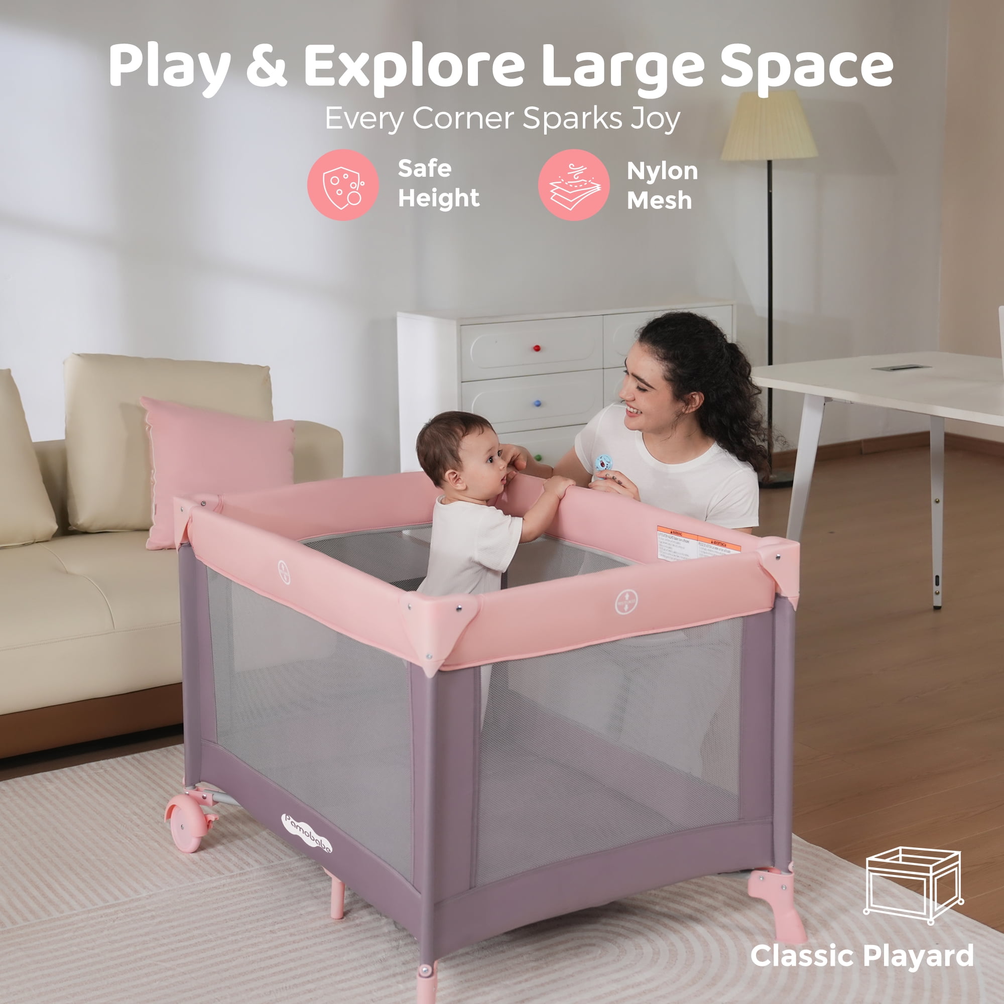 Pamo Babe 4-in-1 Baby Playard with Bassinet & Changing Table for Newborn,4-Panels Playpen