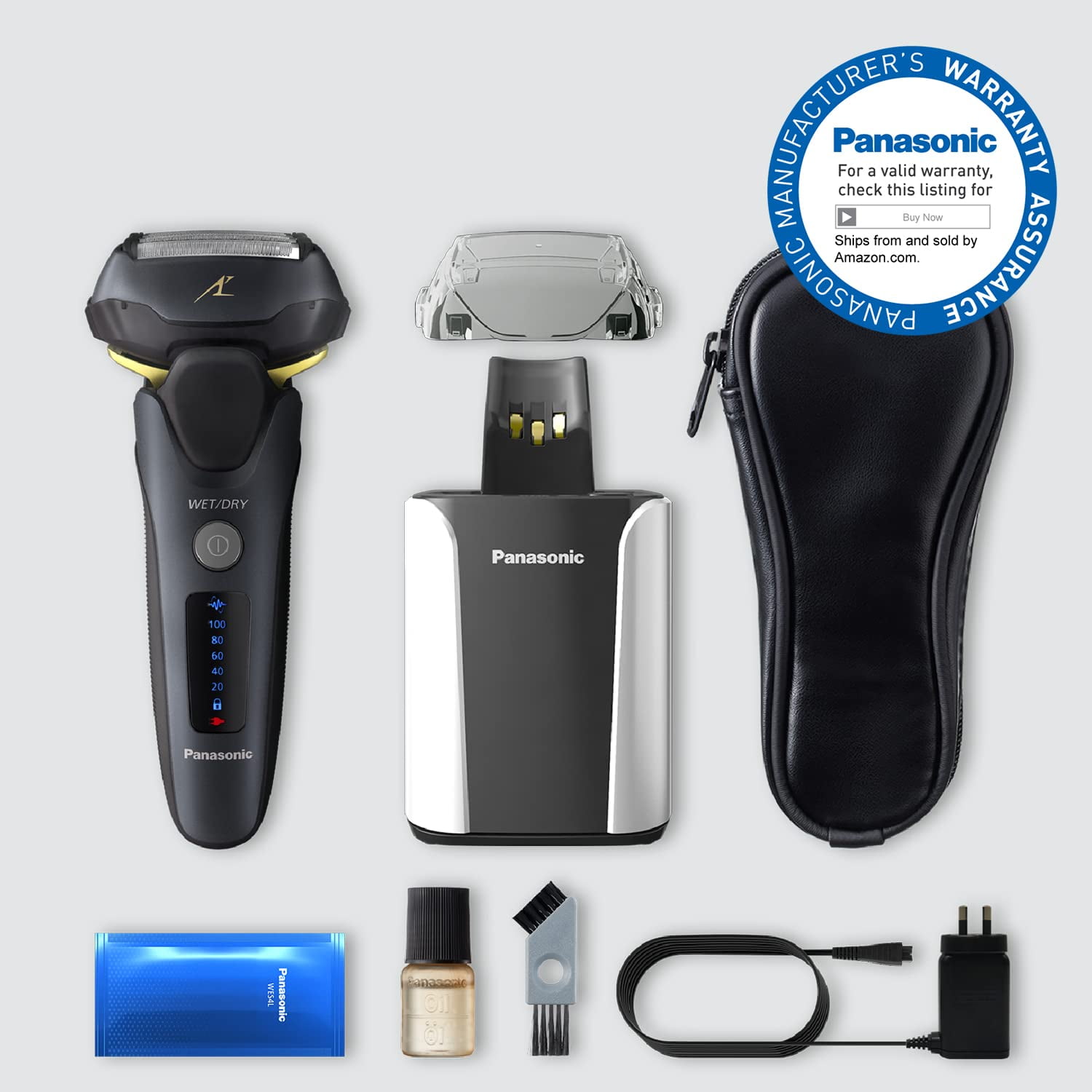 High-Performance Motor for a Fast, Powerful Shave: Panasonic ARC 5 men’s electric razor uses an ultra-fast motor & 5-blade system to deliver up to 70,000 cross cuts per minute, making shaving quicker, smoother and more efficient, shave wet or dry An Incredibly Close Shave: Stainless steel inner blades, precision honed to an acute 30-degrees and outer foil shaver system work to lift, capture and cut through even thick, dense beards with ease Automatic Clean and Charge Station: Keeps your ES-LV97-K men’s razor free of stubble and battery charged. Replacement blade and foil set WES9032P ensures a consistently clean, close, shave
