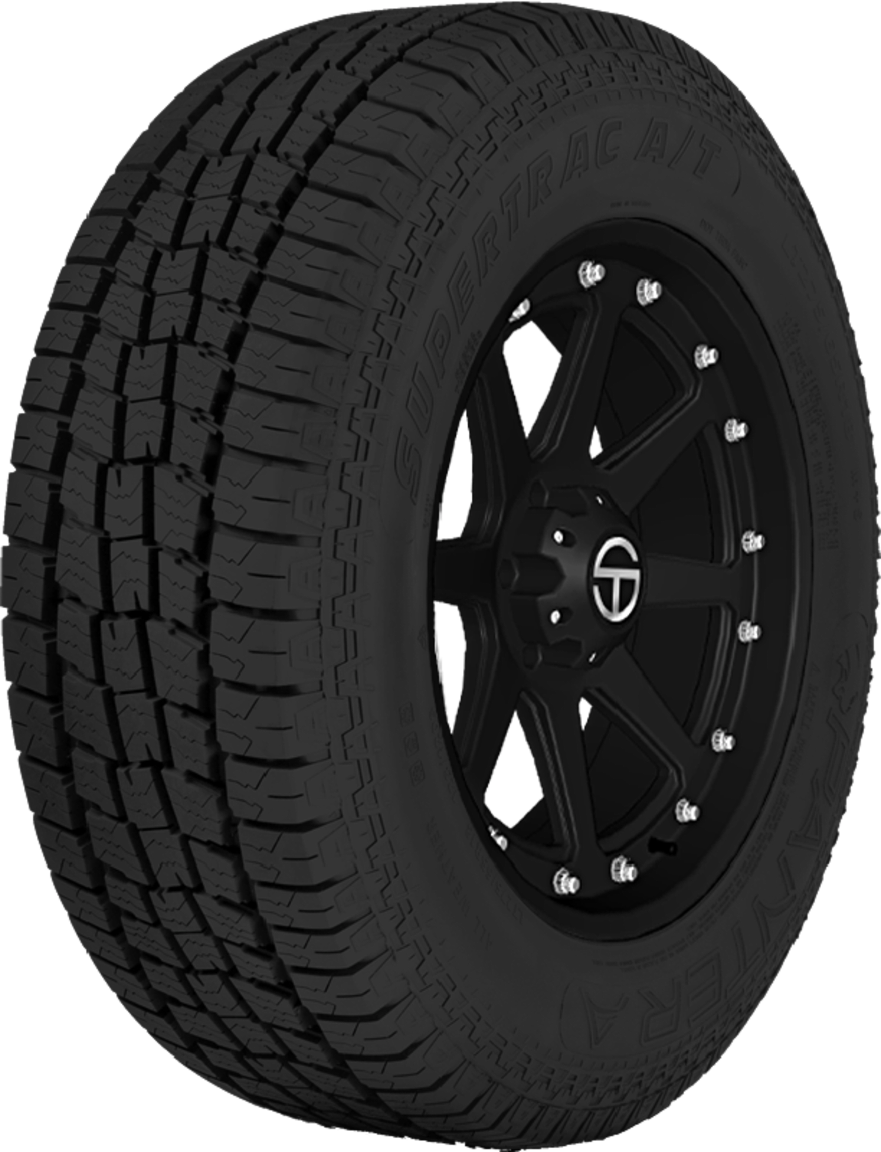 The Pantera Supertrac A/T is an all-terrain tire that’s meant for use on light trucks and SUVs and is versatile enough to performance on the trail, beach, and everything in between. A five-pattern-block tread design expels water to reduce the risk of hydroplaning, and the Supertrac A/T’s zigzag middle block promotes self-cleaning for consistent traction off-road. An optimized design enhances stability and ride comfort, and the Supertrac A/T’s bench-shaped shoulders increase grip to further improve stability and cornering performance.