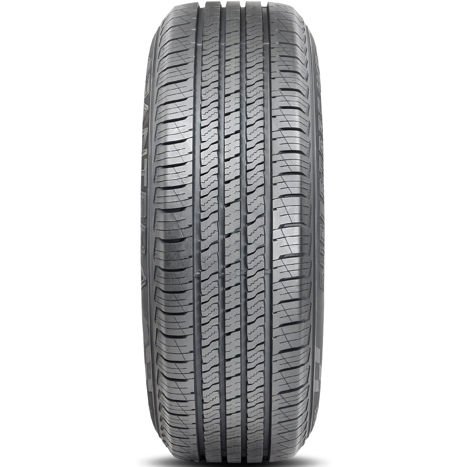 Pantera Supertrac H/T OVERVIEW The Pantera Supertrac H/T is a highway terrain, all season tire manufactured for SUVs and light trucks. Pantera offers a 45,000 mile treadwear warranty, but only for vehicles that are not in off-road and commercial applications. Great all season traction is promoted with this model. The all season compound and the details of the ribbed footprint significantly enhance the tire’s dry, wet, and winter weather grip. As a result, the tire helps to optimize its consistent traction and performance throughout the year. The circumferential grooves disperse water and slush from the footprint, effectively avoiding hydroplaning in wet weather conditions. The ribbed footprint, with the high-stability center rib, maintains the tire’s surface contact. The close and consistent surface contact significantly upgrades its steering responsiveness and driving stability. This effectively boosts the tire’s steering response and accuracy to the driver’s commands, while the structure is secured as well. Cornering is boosted as the stable shoulder blocks firmly grip the road surface with the use of extra biting edges. The slant grooves and sipe placement create friction when stopping, which significantly shortens the braking distance. The Supertrac H/T uses its closed shoulder pattern to decrease road noise levels. The tread channels airwaves through the footprint, preventing them from coming into contact with the tread elements. As sound waves are not generated, the passengers’ driving enjoyment is not disturbed. This guarantees a quiet driving experience. Not all tire sizes are suitable for all vehicle types. Please refer to the item specifications for accurate information about vehicle type fitment for this particular size. Manufacturers recommend changing tires every 10 years. As long as tires are properly stored before they are sold, the year of their manufacture will not shorten their service life.